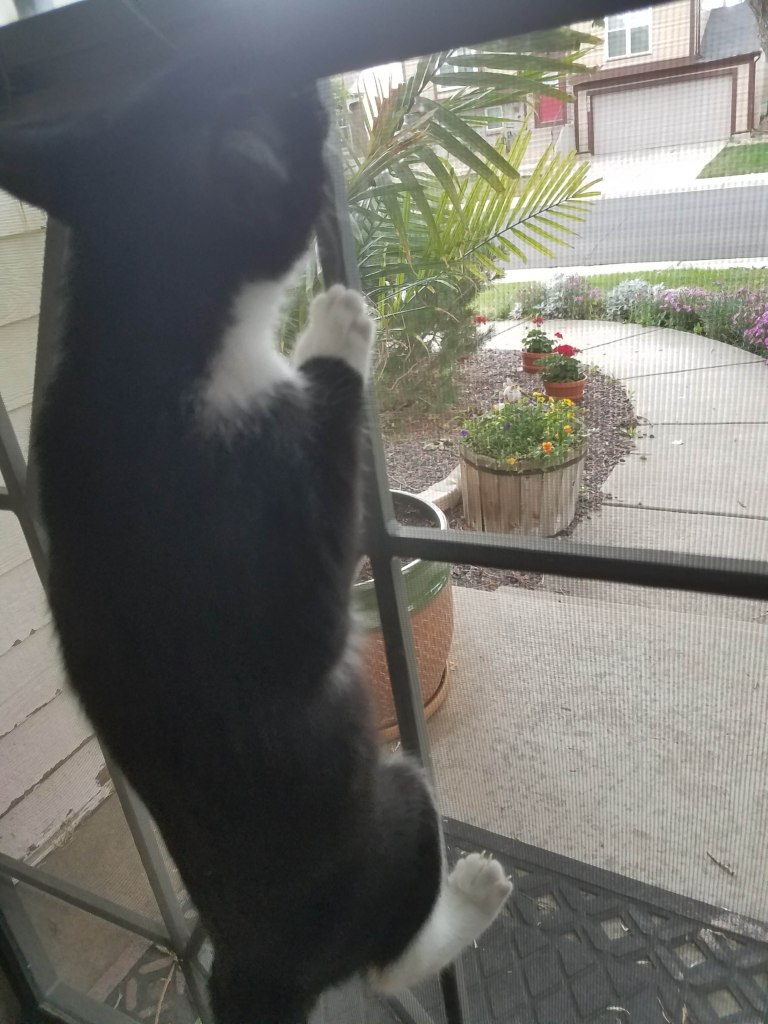 1. I’m going to keep offering her the kitty cookies as they are an effective training tool, but she is so motivated to please me that it may be I won’t need them. There were 7 kittens in her litter, and then there were the days in the unhappy situation with a dog before she came back to the shelter, so it’s no wonder that she was needy. She is doing better now, but she pretty much follows me from room to room and keeps track of me. I guess I am her Emotional Support Human, but she is kind of my emotional support animal too, so it all works out. The way things are going I may never be able to leave the house, and today the rheumatologist told me I can’t have visitors unless they were outside, masked, and 6 feet from me. Thank heavens for little Hannah and her insistence that I be her giant cat toy!