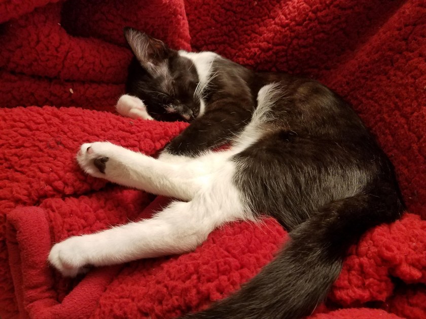 1. You are right, it certainly didn’t take her long to transform me into a giant cat toy and personal servant. I don’t think that she is going to stay small as she is growing like a week and eating like a pig. I have had a string of fairly large cats, so a small one would be a change. We’ll see.