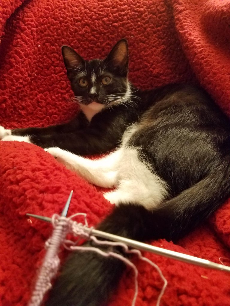• There has been some yarn chomping, but she has already grown out of the behavior. Now she would rather eat the pattern pages.