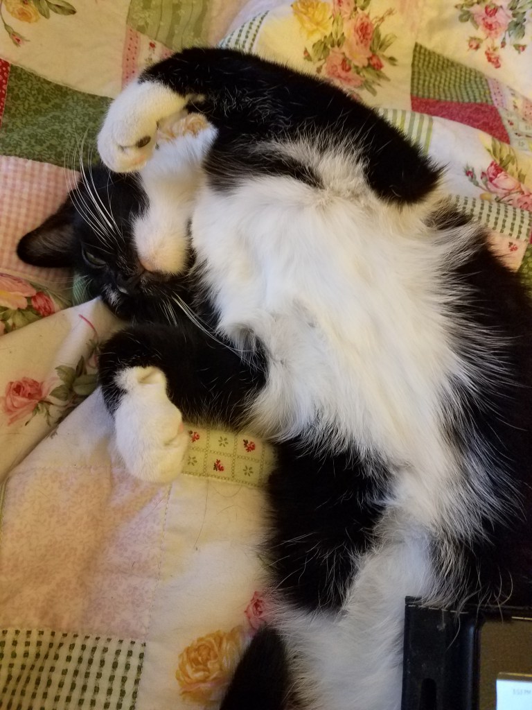 Well, it is kind of late now and since I’ve just completed running endless laps around the house for half an hour I’m now thinking of joining Kitten Mom for a nice overnight snooze so that we can get up and play again in the morning. I get my favorite smelly fishy food for breakfast in the morning and maybe I will get some cookies too! There are sure to be squirrels back in the front tree for me to watch. Why can’t they come into the house to play with me? Sometimes there are birds by the windows too…