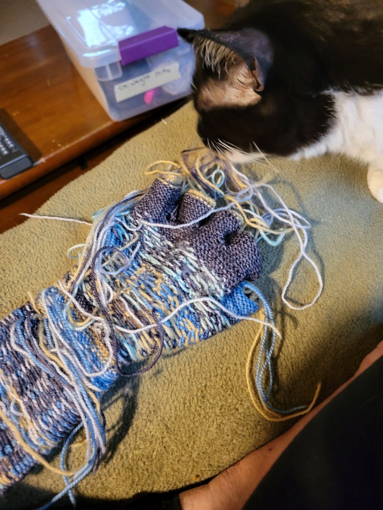 There were lots of loose ends to weave in after knitting. Good thing I had such quality help!