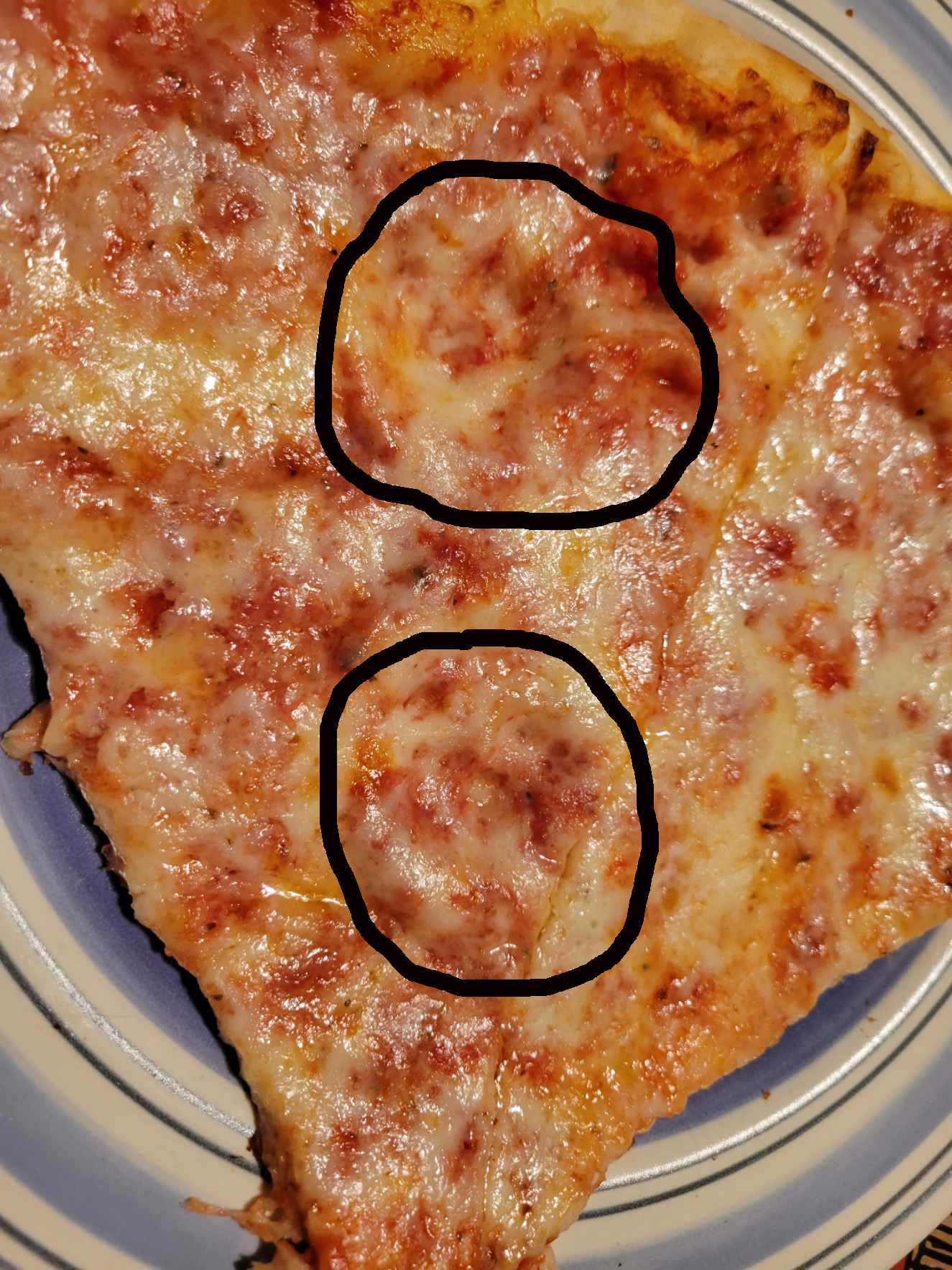 Okay, I was standing on the pizza while the Mother of Cats’ back was turned. Oh, are you having trouble seeing those prints?