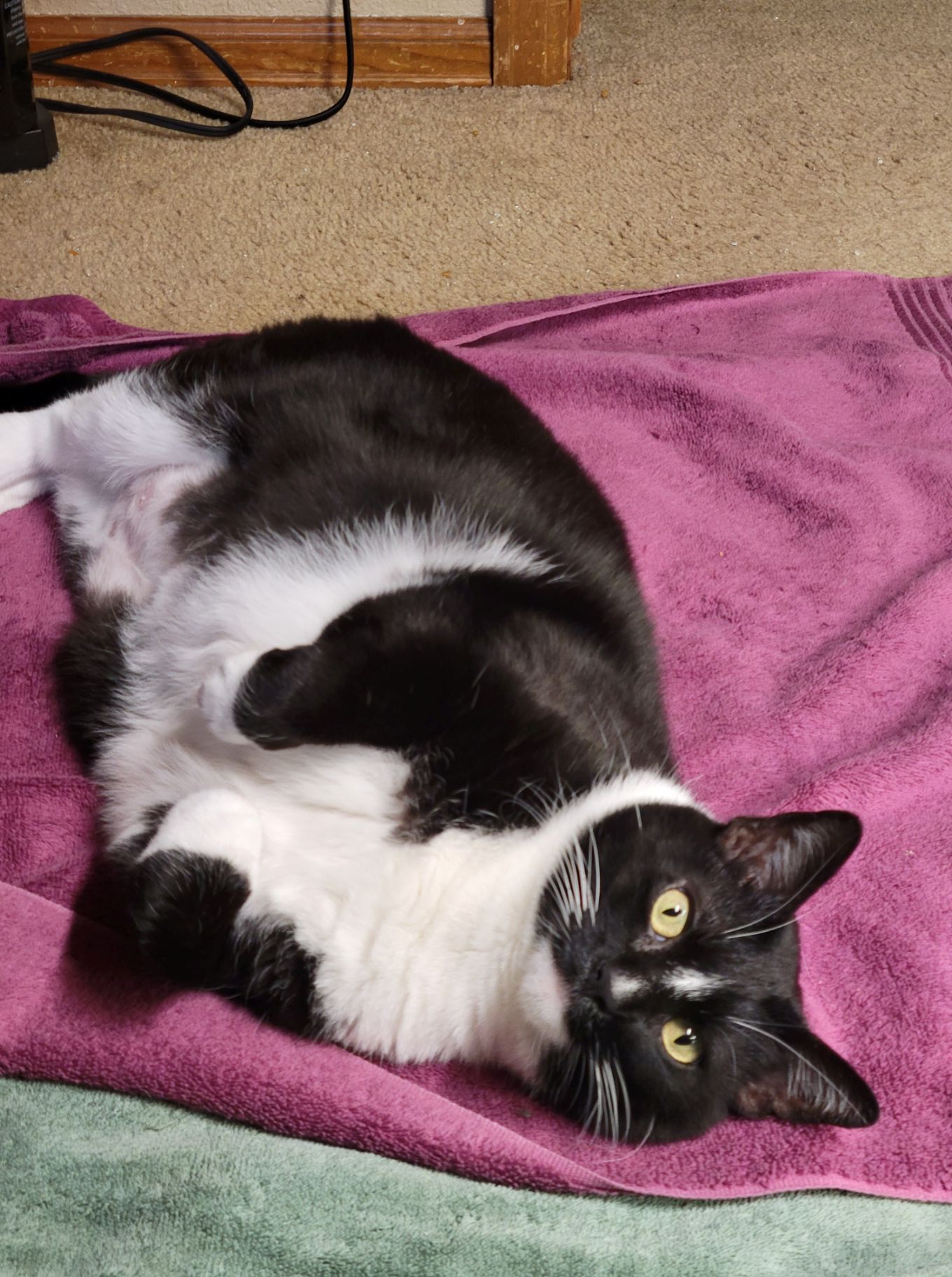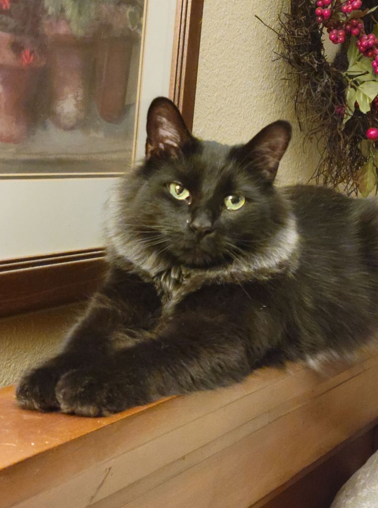 Mateo is a little Maine coon, and they can have some pretty interesting fur characteristics. He has an amazing undercoat that grows in every fall that will eventually be cover his underlying fur. When it is a different color, which happens with him, it is cool. His head, shoulders and legs will all stay black, but an immensely fluffy coat will cover him everywhere else. He used to be dull blackish-brown, but now it is evidently silver. I feel a little sad as it may be related to the extreme medical events of the summer, but he will look amazing if it is all silver. I’ll hunt for some comparison pictures to show the difference once his coat is all in.