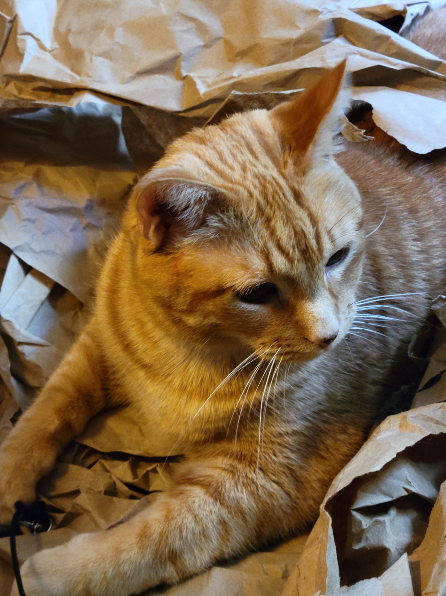Another glimmer: my son’s three cats were rehomed together to a wonderful lady who had lost a beloved cat. All three kitties are now happy in their new home, piling on and cuddling with her while she crochets in the evenings.