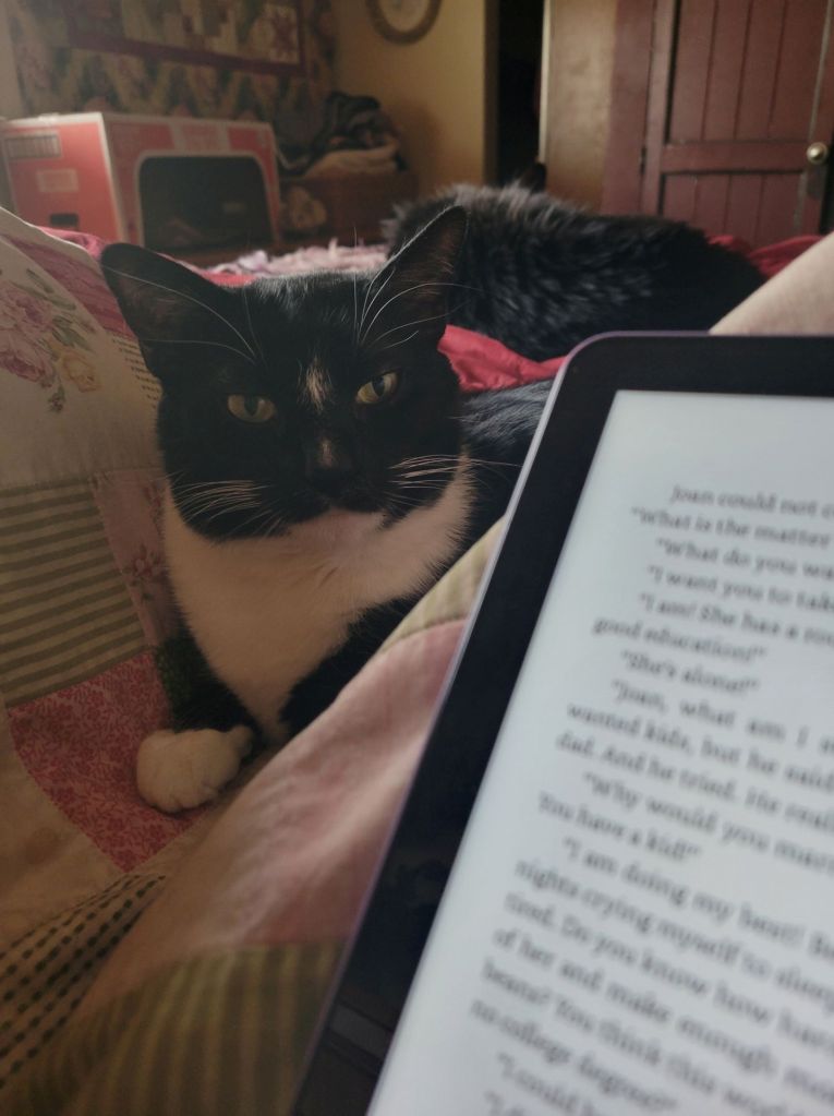 Hey, I forgot to mention that the Mother of Cats is reading every single morning while she drinks her latte. I am her constant companion when that is happening. Hey, if she doesn’t guard her morning toast, I get to snack on that too!!!