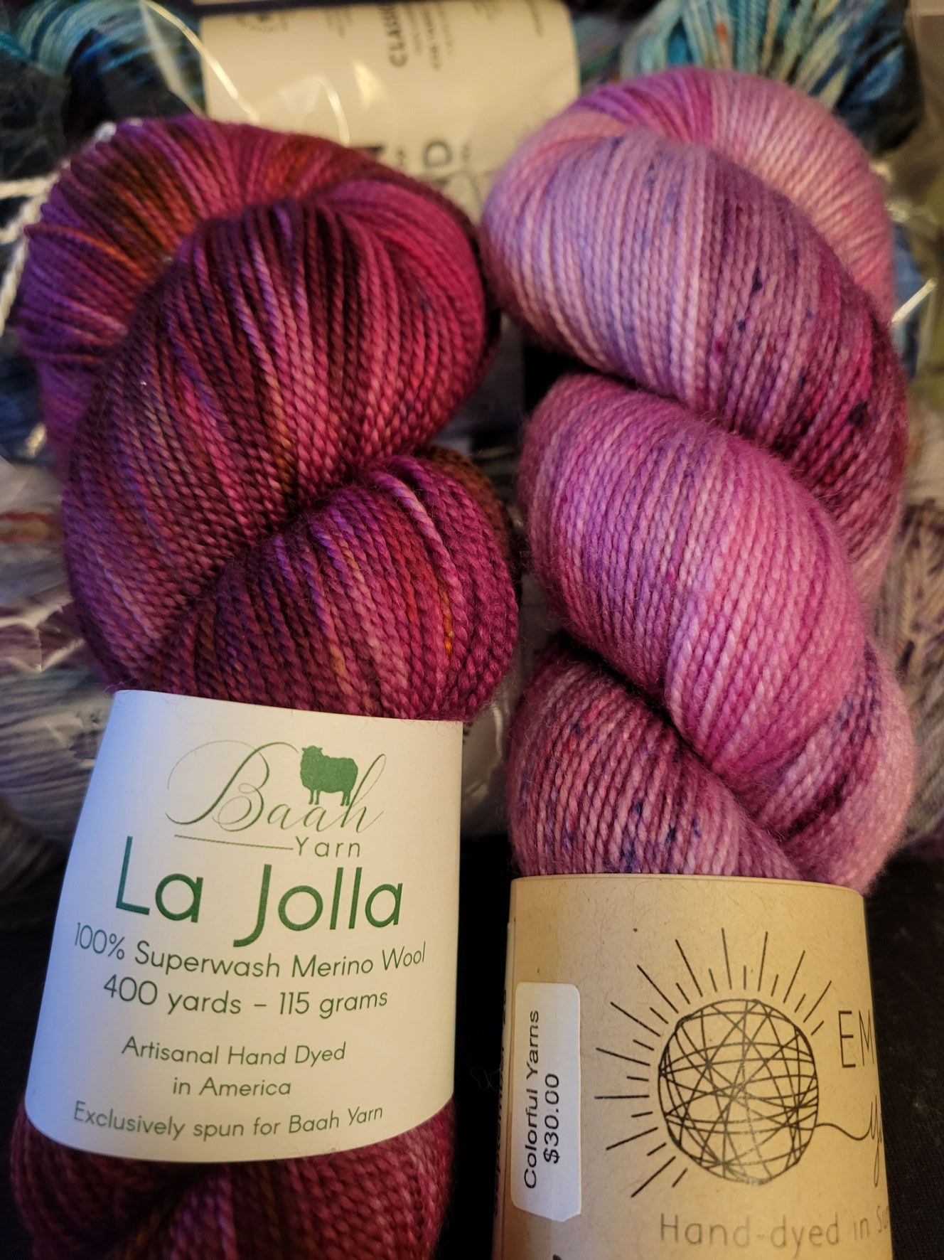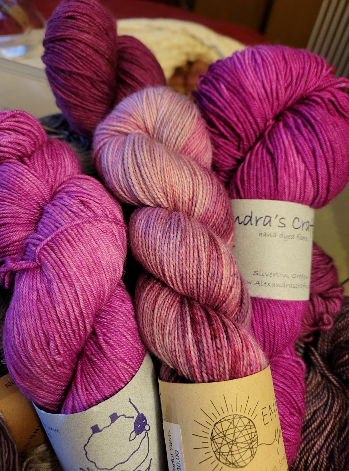 Feeling positive and joyful, I bought a lots of yarn in the gloom of winter. Look at all of that pink!!!!