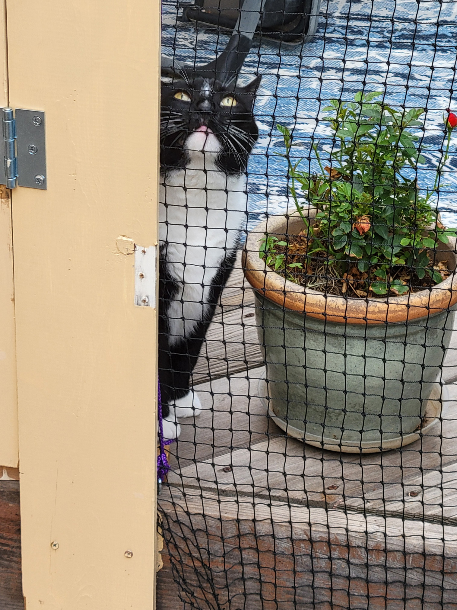 Wow. She was really busy out here. There are plants, and a new wall of netting that keeps me in the catio (which is also absolutely unnecessary) so I can’t play with my friends out in the yard. Gosh. There sure is a lot to report on!!