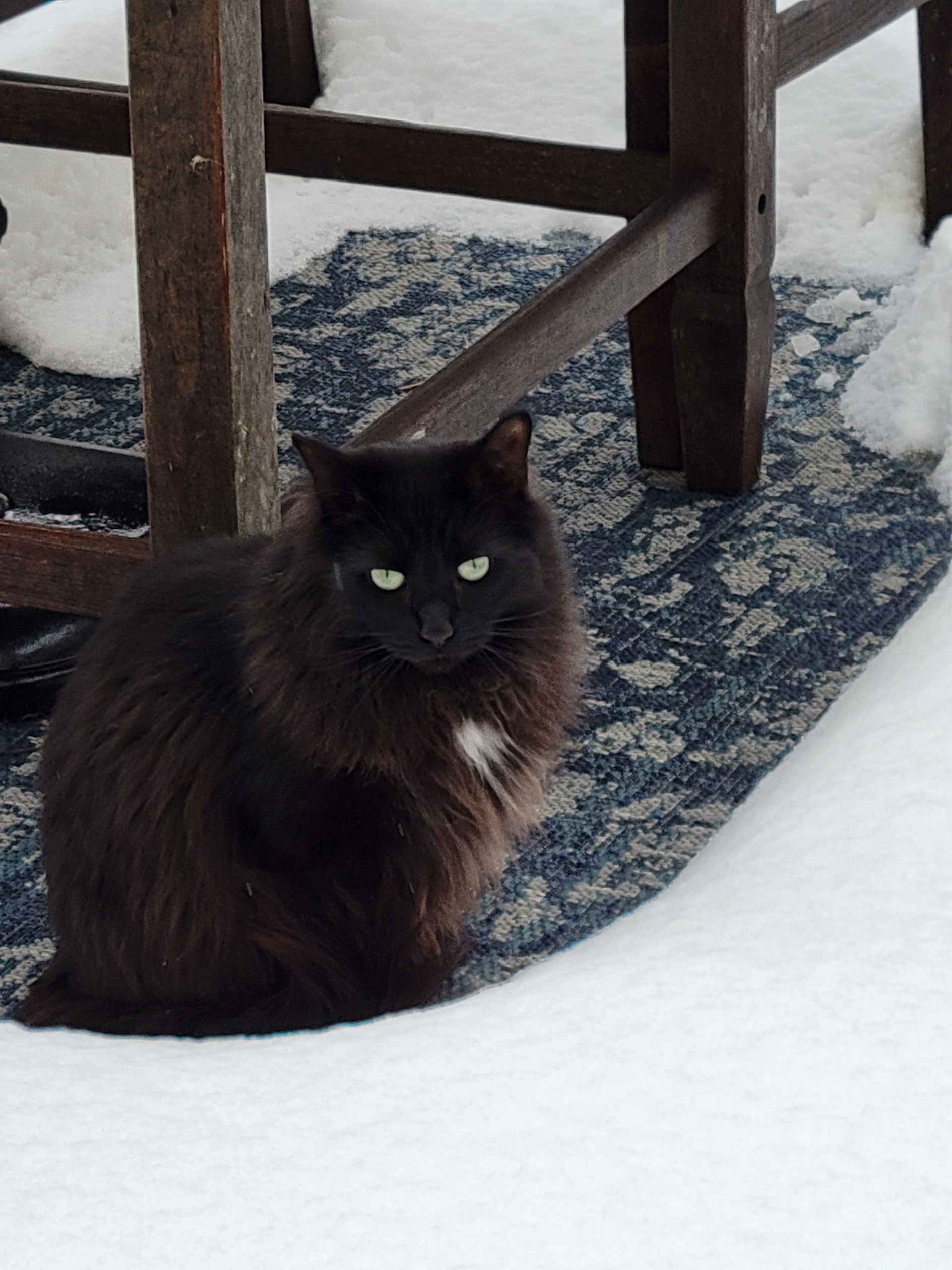 The left is a bunny on the highway past my deck, and the little statue under the tree with the frolicking bunnies is in my new neighbor’s yard.