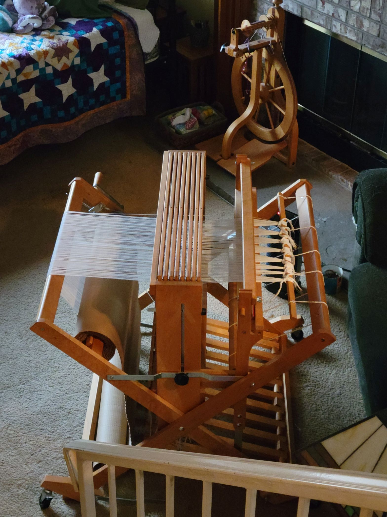 The Mother of Cats took two evenings getting the heddles of the loom threaded and then did some test weaving to check to make sure that she hadn’t made any mistakes. It all looked great to me, but she suddenly burst out with…