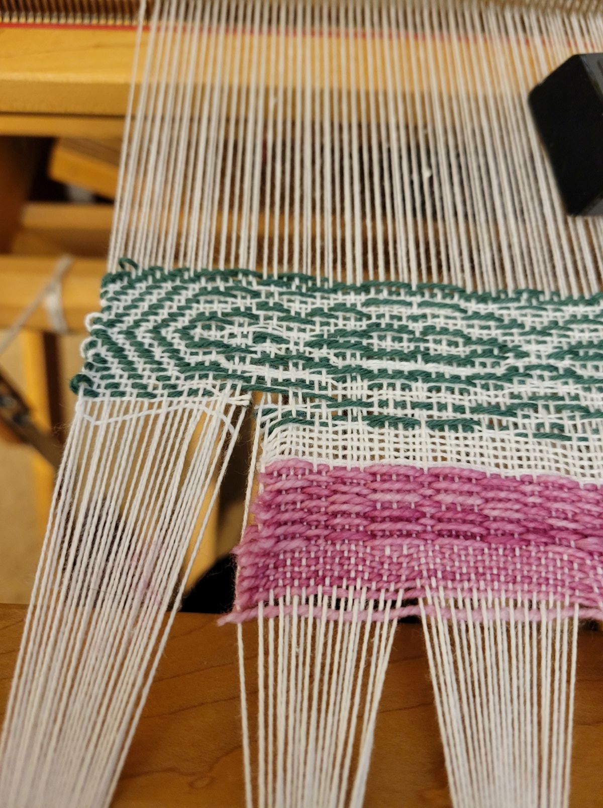 - Next project on the loom: I have to weave a band of the pattern and then cut it off the loom (!!!) so that it can be washed and measured. Oh boy. This is going to be an adventure for sure. I will also get to see if the cotton yarn I have chosen is color fast during washing.