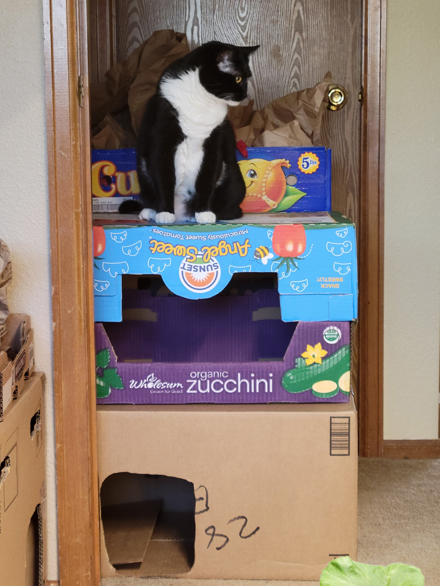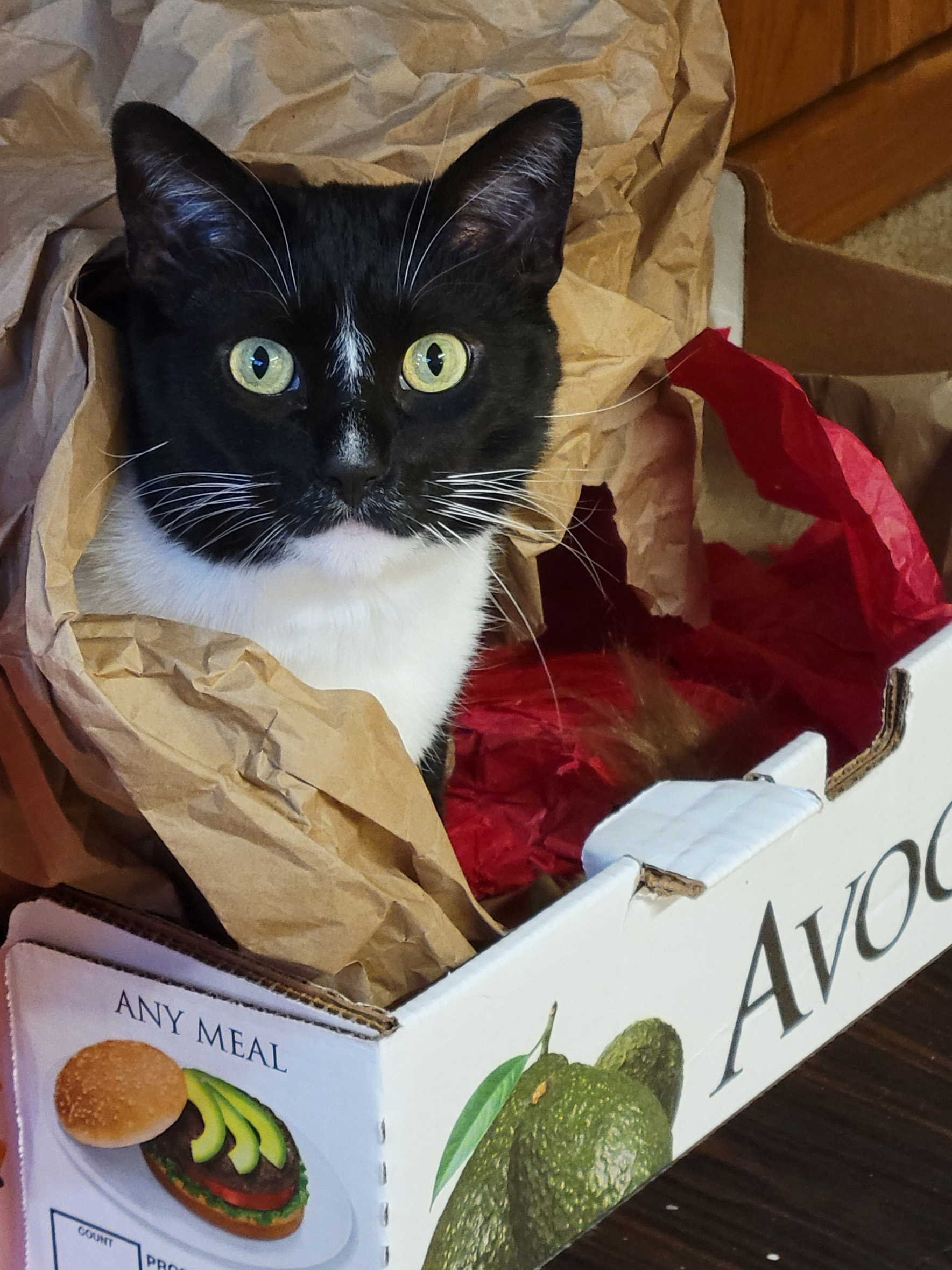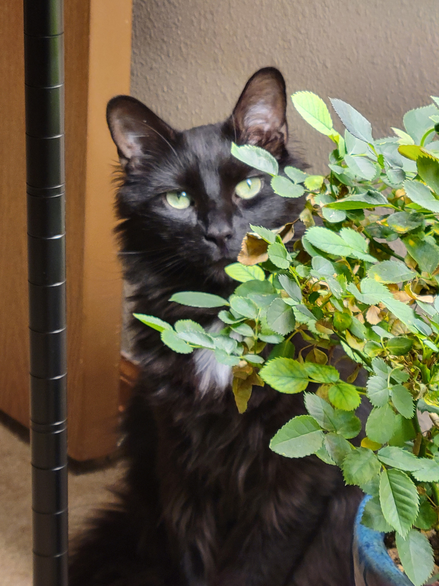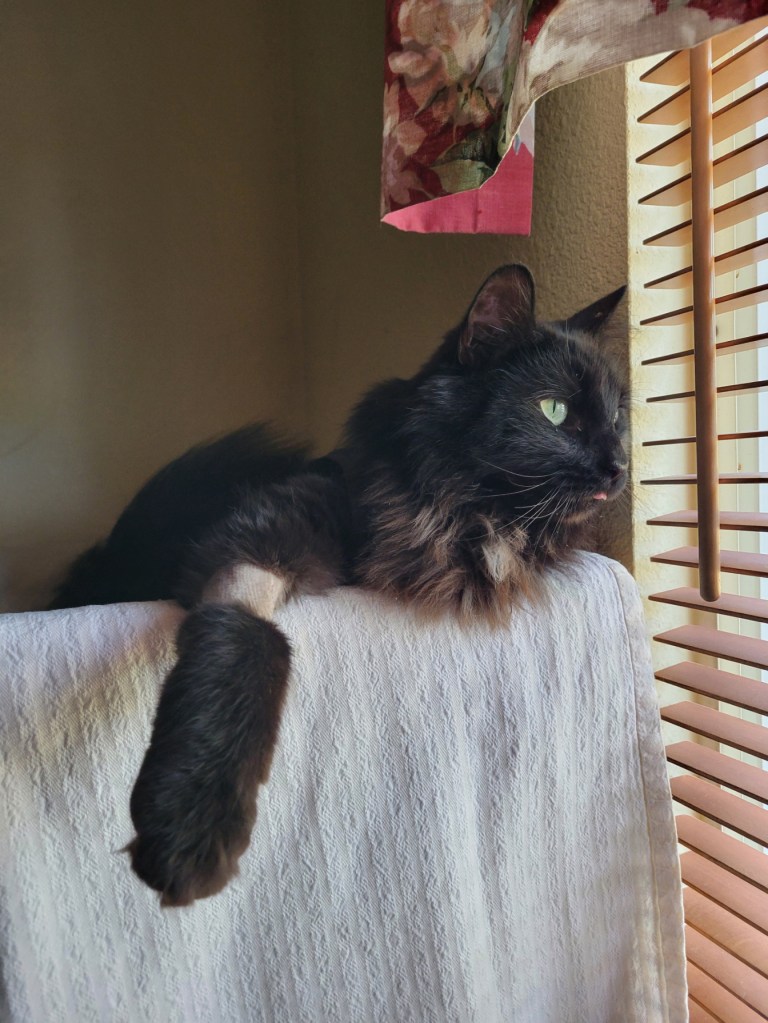 I was able to successfully rehome my son’s three cats all together two weeks ago. This week, as I worried about how they were doing, I followed the story of Francine’s loss and the resulting successful rescue operation. Yesterday when I heard that Francine had been returned to her home, a Lowe’s store where she is the resident cat, I heard from the new owner of my son’s cats; they were out, sleeping on her bed, and chomping tuna. Glimmer time!!