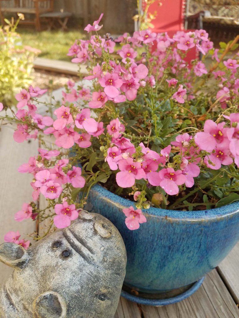 Now that the extreme heat of the summer is over the flowers in all of my pots have recovered and are blooming like crazy. It is fun having blooms around while the leaves are falling off of the trees.
