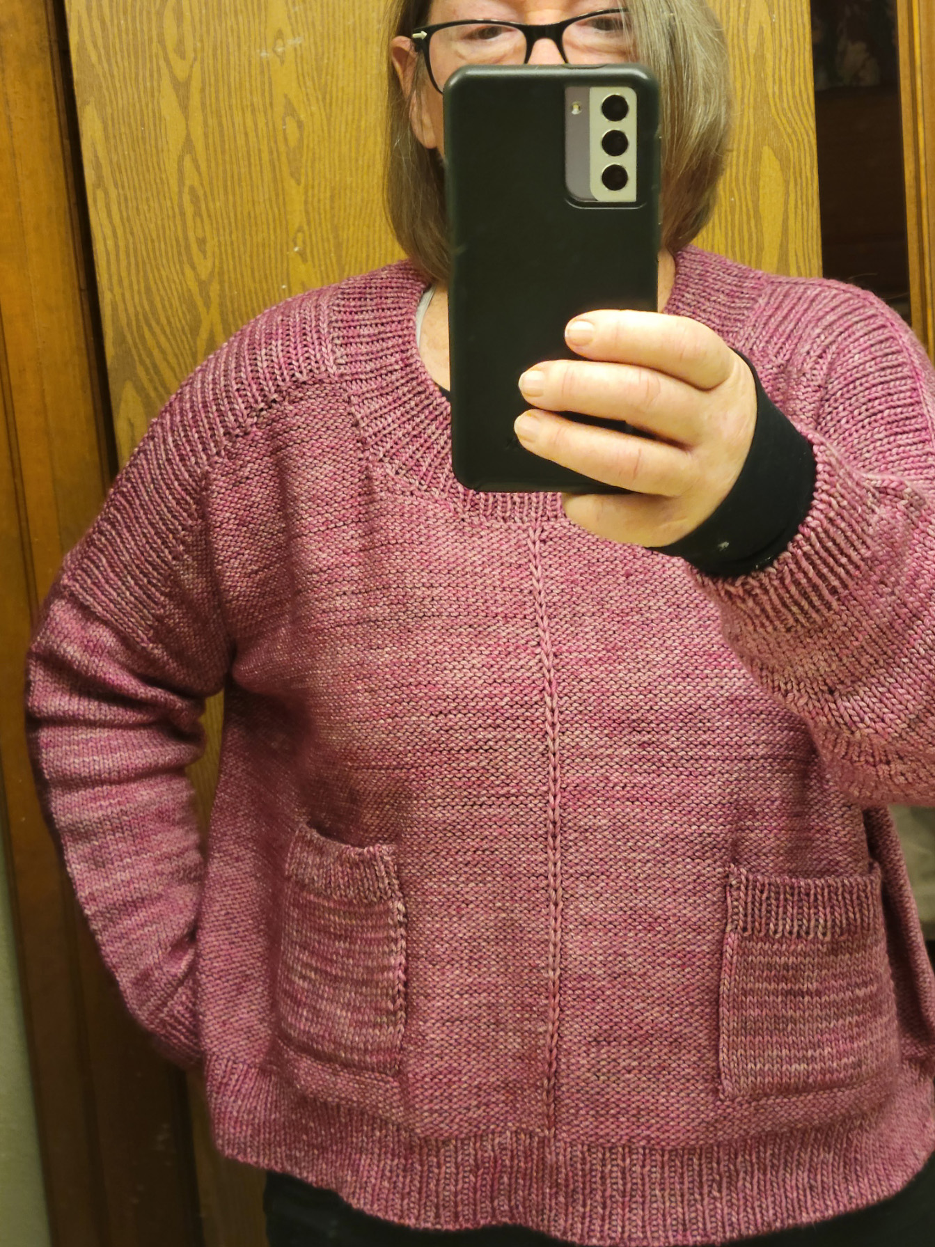 What a knitting journey this has been. The minute I saw The Weekender Crew by Andrea Mowry I wanted to make one. It’s a big, comfy sweater with some cute stylish details (pockets on the front) that I thought would be my best friend all winter long. Dropped shoulders. Long sleeves. Split hem. DK weight yarn. Deep ribbing on a perfect crew neckline. I mean, this was an ideal sweater for me. I went on an online hunt for the yarn and my son drove me to a yarn store up north of me for a birthday yarn shopping event.