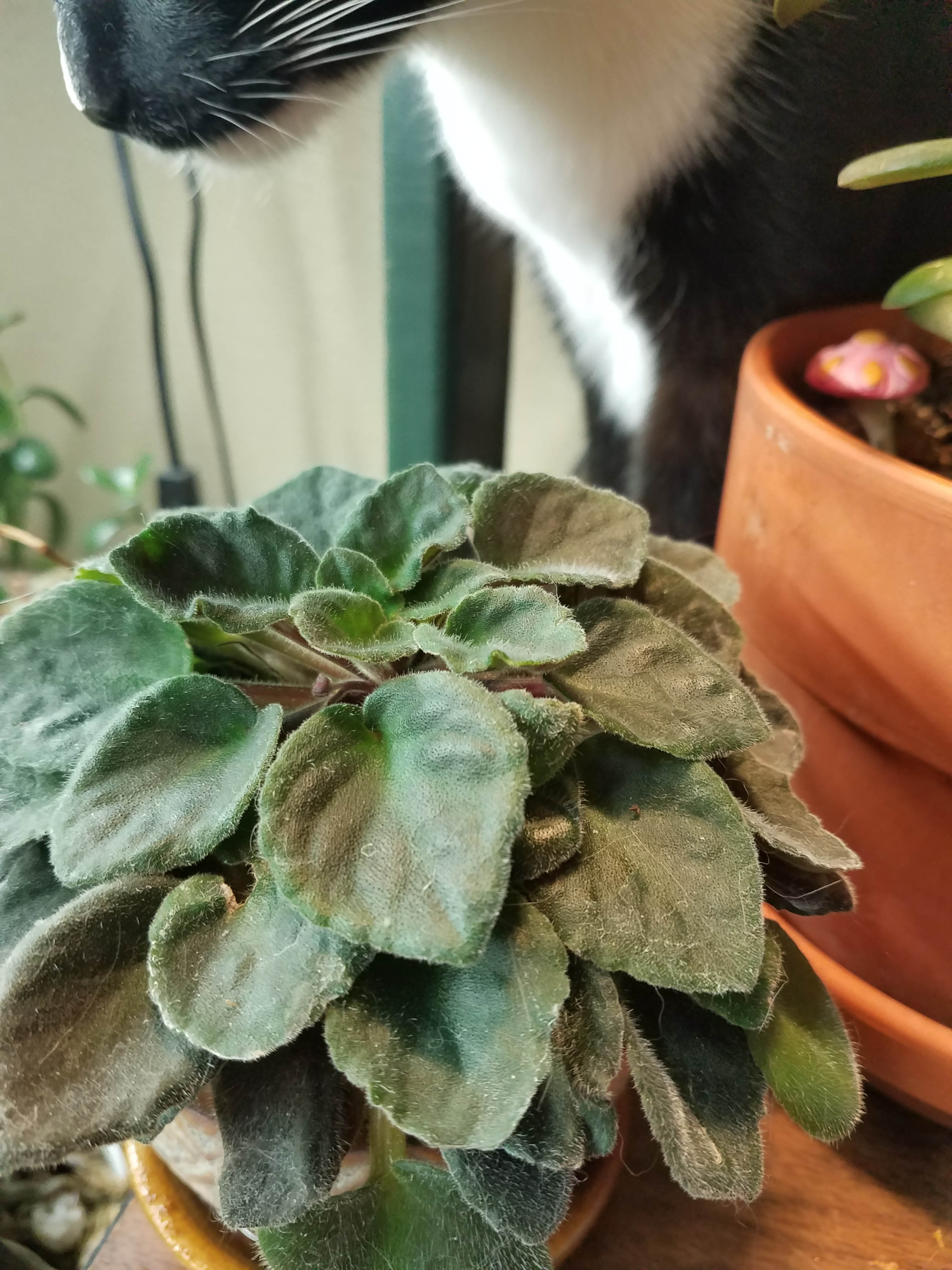 I’ve taken to spraying my African violets every week and they seem to like it. The leaves have lifted up and the plants are blooming like crazy. Not what I expected to happen, but the plants are responding so well I spray them down weekly now.