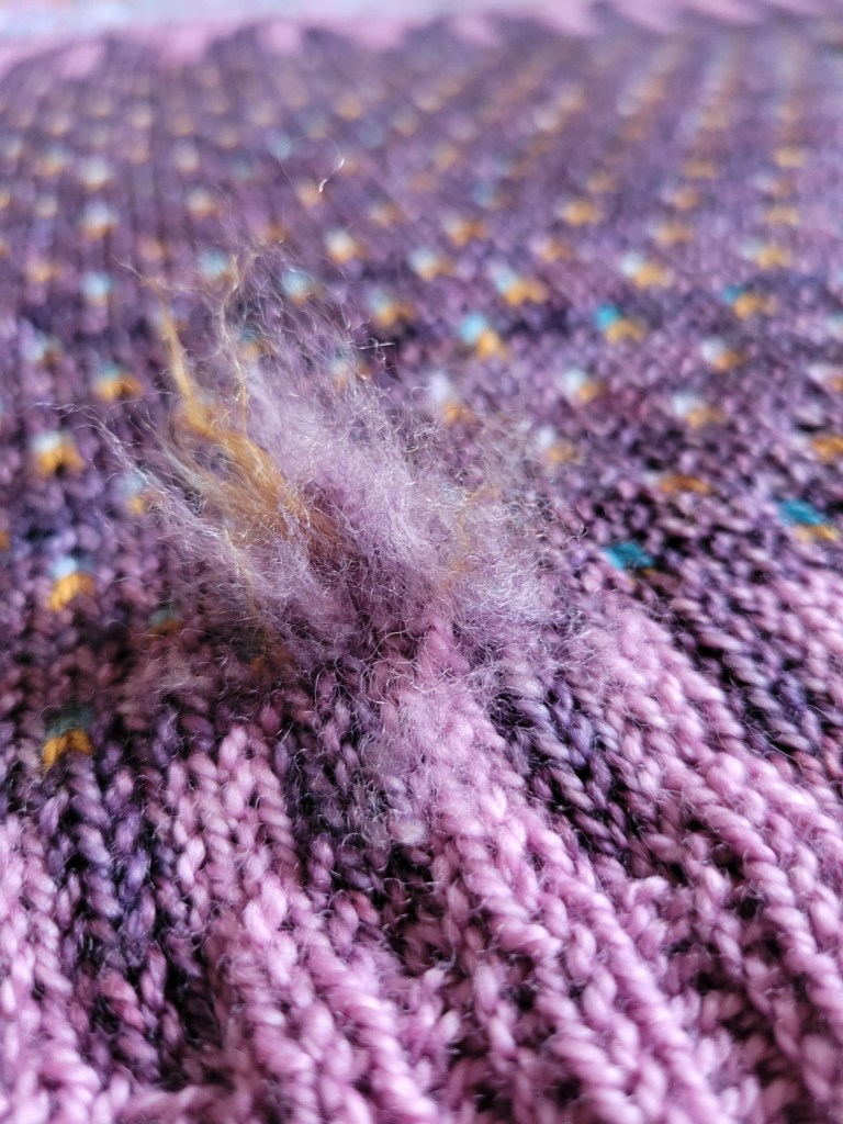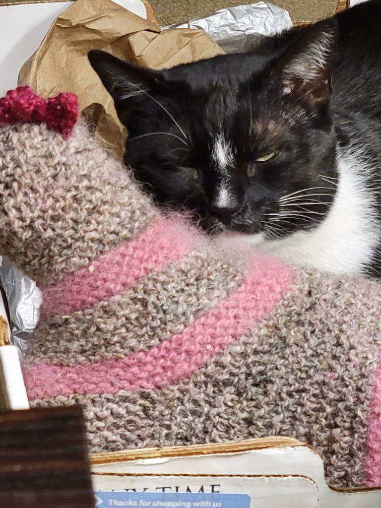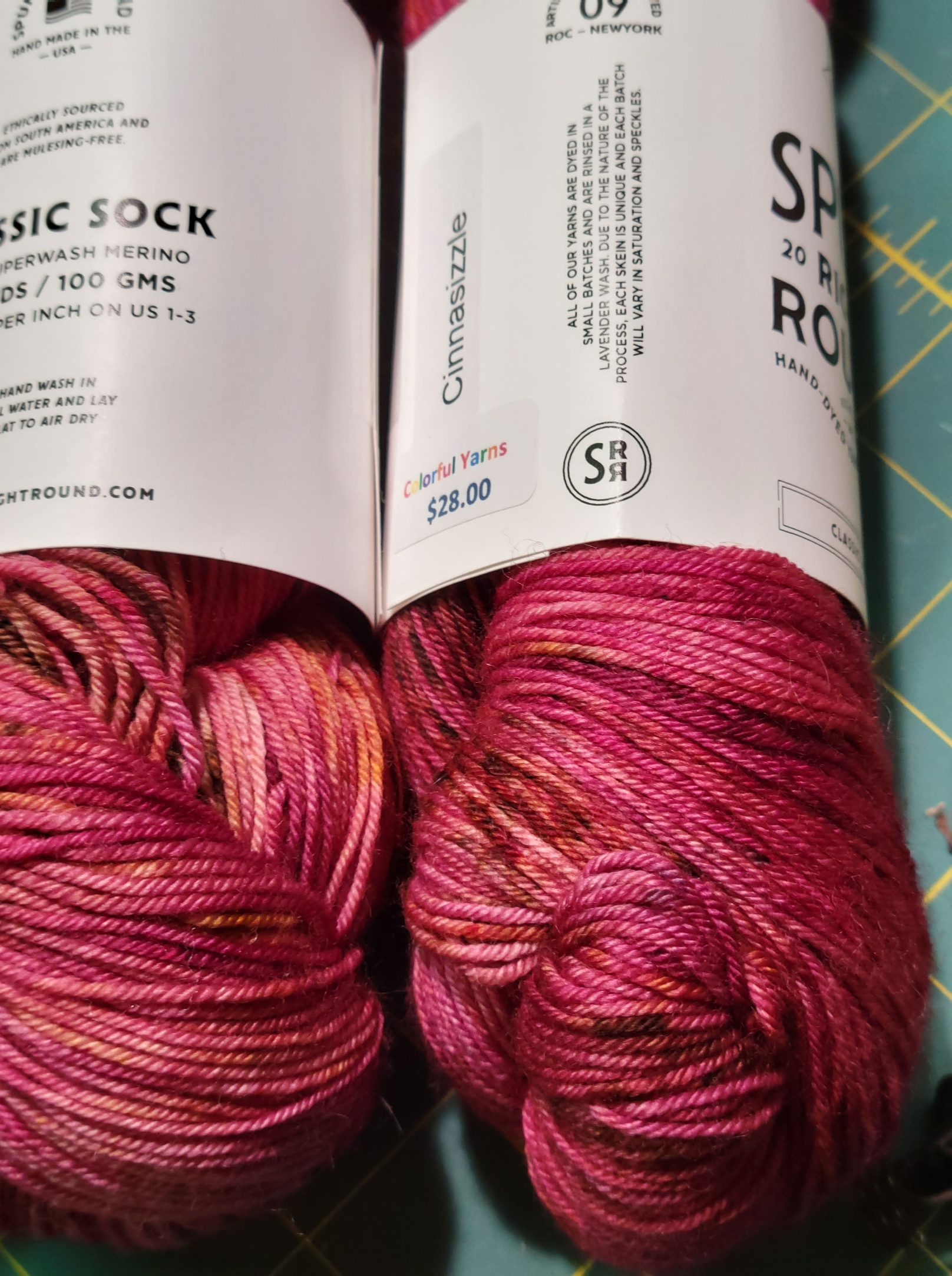 Doesn’t that sock look warm? The Mother of Cats is slowly knitting away on the second sock and hopes to have the pair done before the end of the week. She is kind of anxious to have it done because she is all motivated to make more socks after cleaning up her yarn stash because… she found some mini skein yarn sets for fun socks!