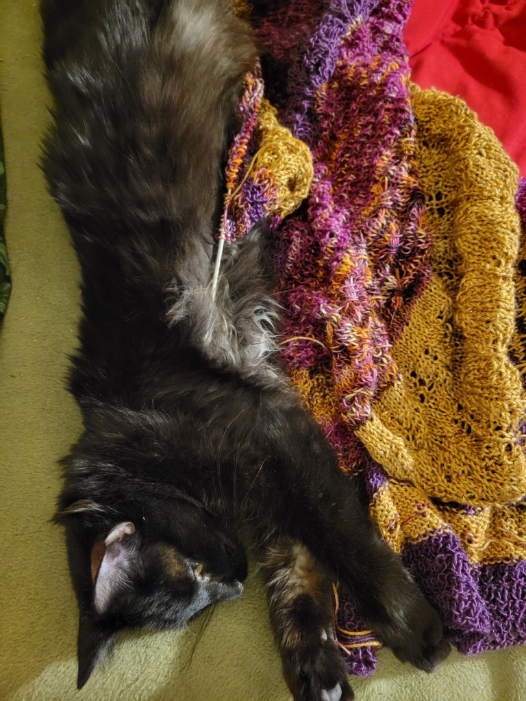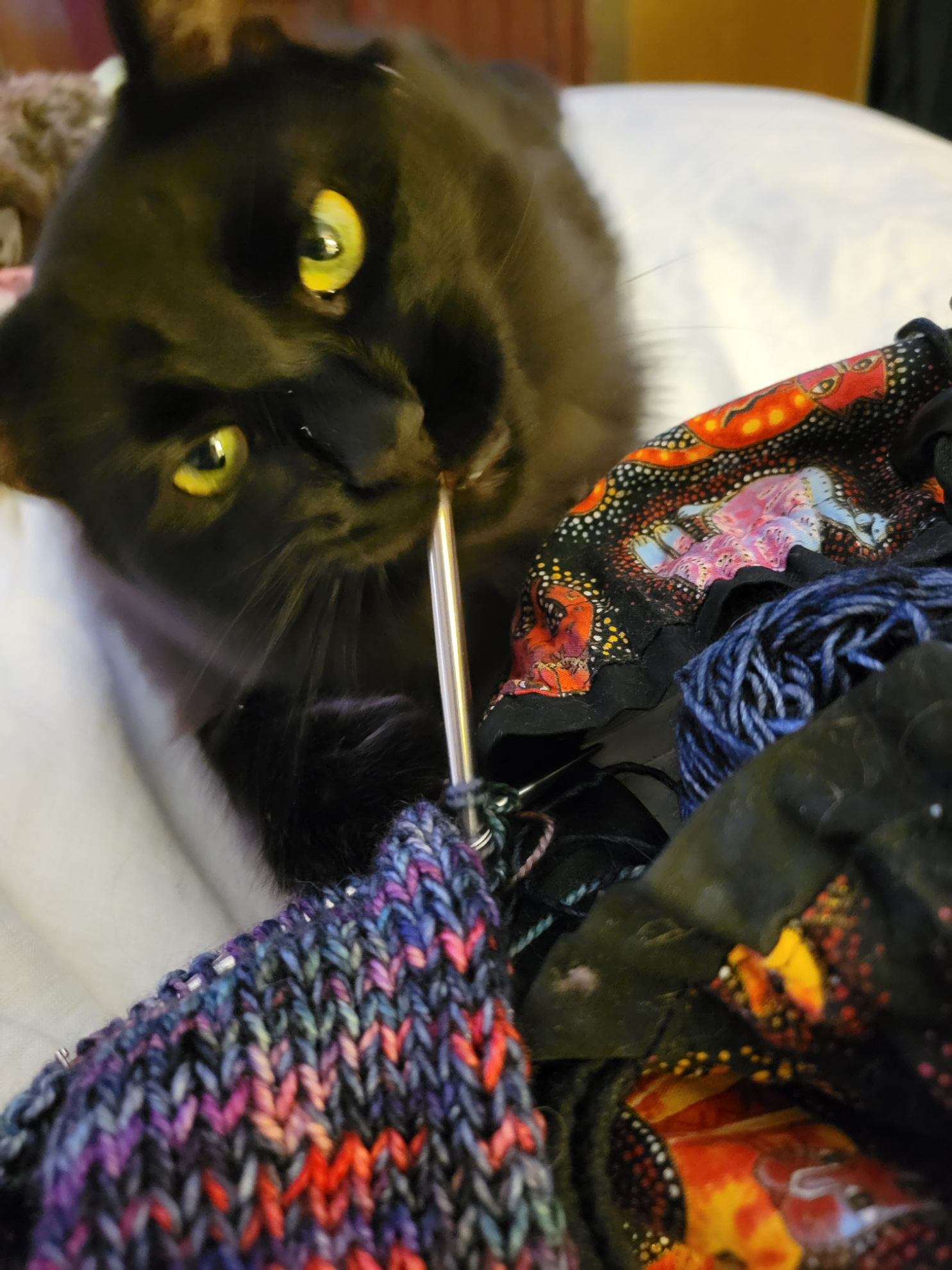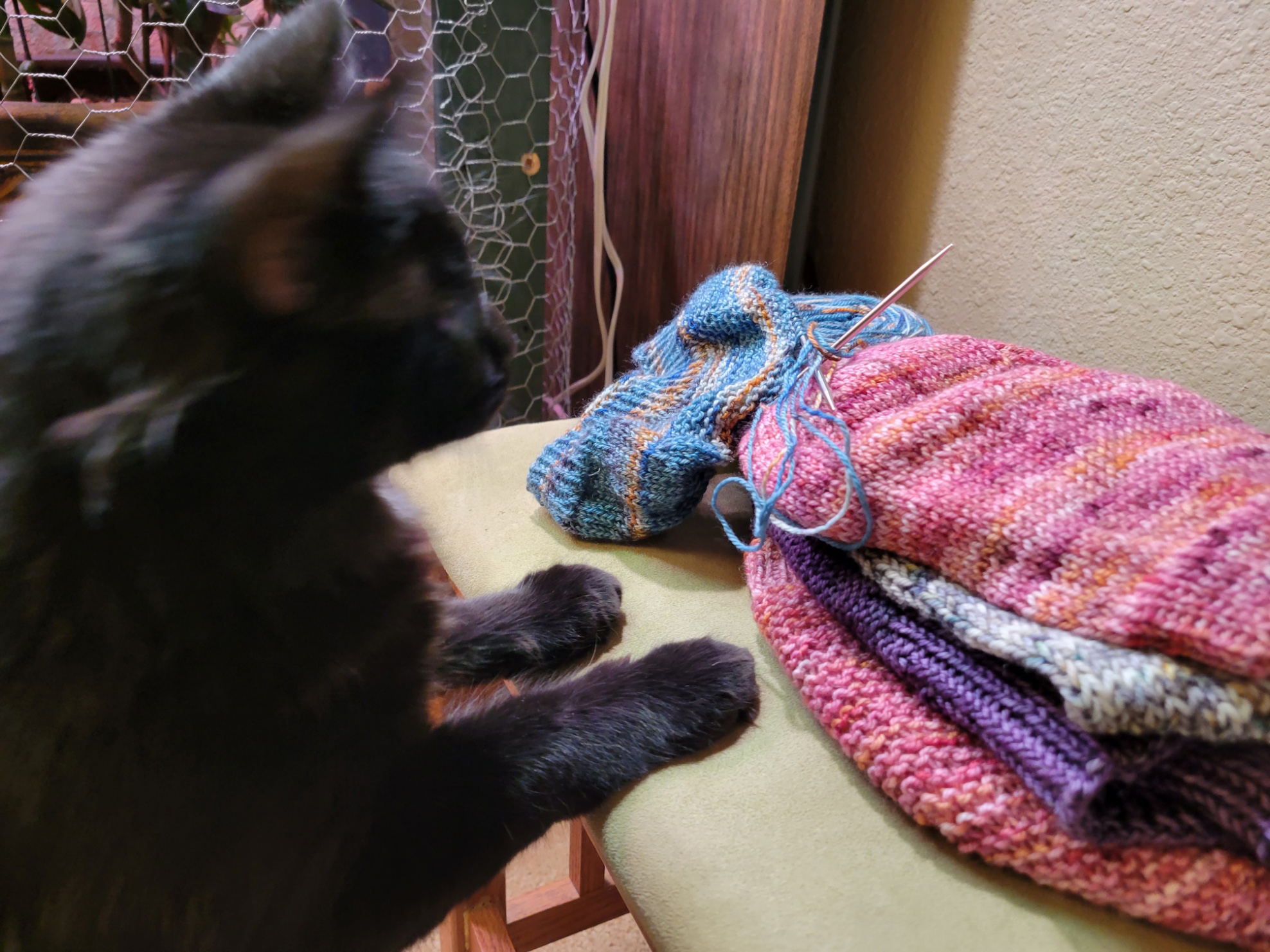 The Mother of Cats also got some knitting done. Here is her first sock!