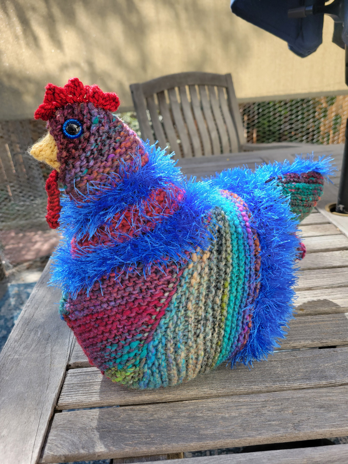 She says that she is going to make doodle socks. What? Seriously, do socks sound fun to you? She should knit me some doodle mice to play with. Maybe a little doodle sweater to put on MATEO because he will hate it and that will be seriously funny. He deserves to have that happen to him because last night the Mother of Cats glanced over at him just in time to see him ripping the comb off the head of MY CHICKEN that she gave me to groom. What is up with that little idiot cat?!!! He had pulled lots of yarn pieces out and was clearly trying to rip the chicken open. What is wrong with him… does he think that he can actually eat the chicken? Sigh. The Mother of Cats took it away last night and put it on a high shelf where he can’t get it.