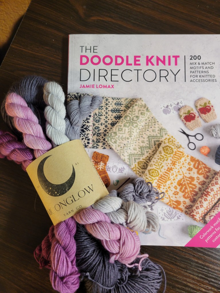 - I have three mini-skein sock kits from Moonglow to knit. Yay. Lots of doodling ahead! I’m chomping at the bit to start designing some socks, and I can see some posts ahead.