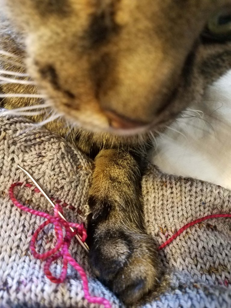 I also feel like I need to knit a little cat, too. I’m cleaning a lot of shelves and I want some more knitted critters to fill in the gaps. 🙂