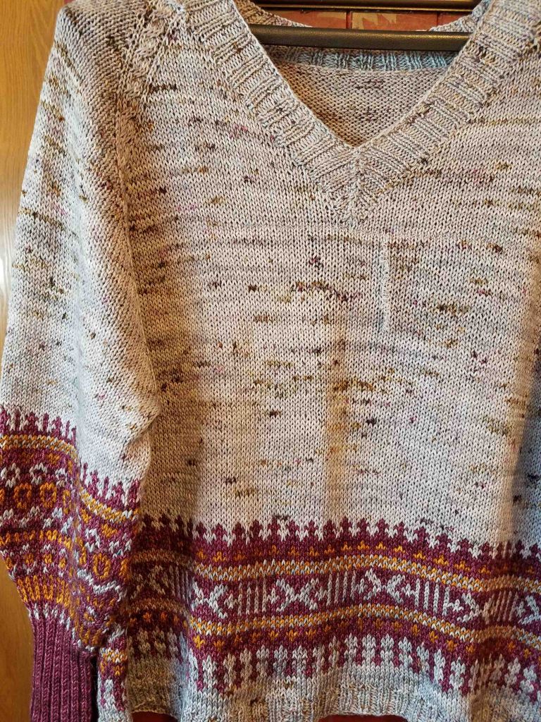 I cast on and started another shawl. I messed up the color sequence on this second one, so it has some major Sharon Snax going, but I love it anyway. Now my dilemma is whether to continue with shawl number 2 until I have caught up with the first one, or to charge ahead on the black and red version so I can see what the colors will look like. There is a change in needle size involved so I may keep going on #2 until I get to the lace section at the top that I can switch the needles between the two shawls.