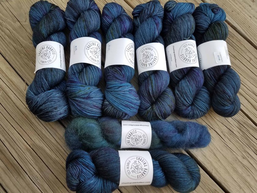 Except… there is another Sharon from Security MKAL coming up in a couple of weeks and I just bought the pattern and have been diving into the stash to find possible yarns to use (I’ve have recently learned that shopping the stash is actually to be referred to as “stash surfing” in Sharon land. I love this community of snarky, supportive, cat loving knitters. This new MKAL is the Snark-O-Meter and I can’t wait to get the first clue. I need 4 skeins of yarn to make this thing and here are the possible candidates right now:
