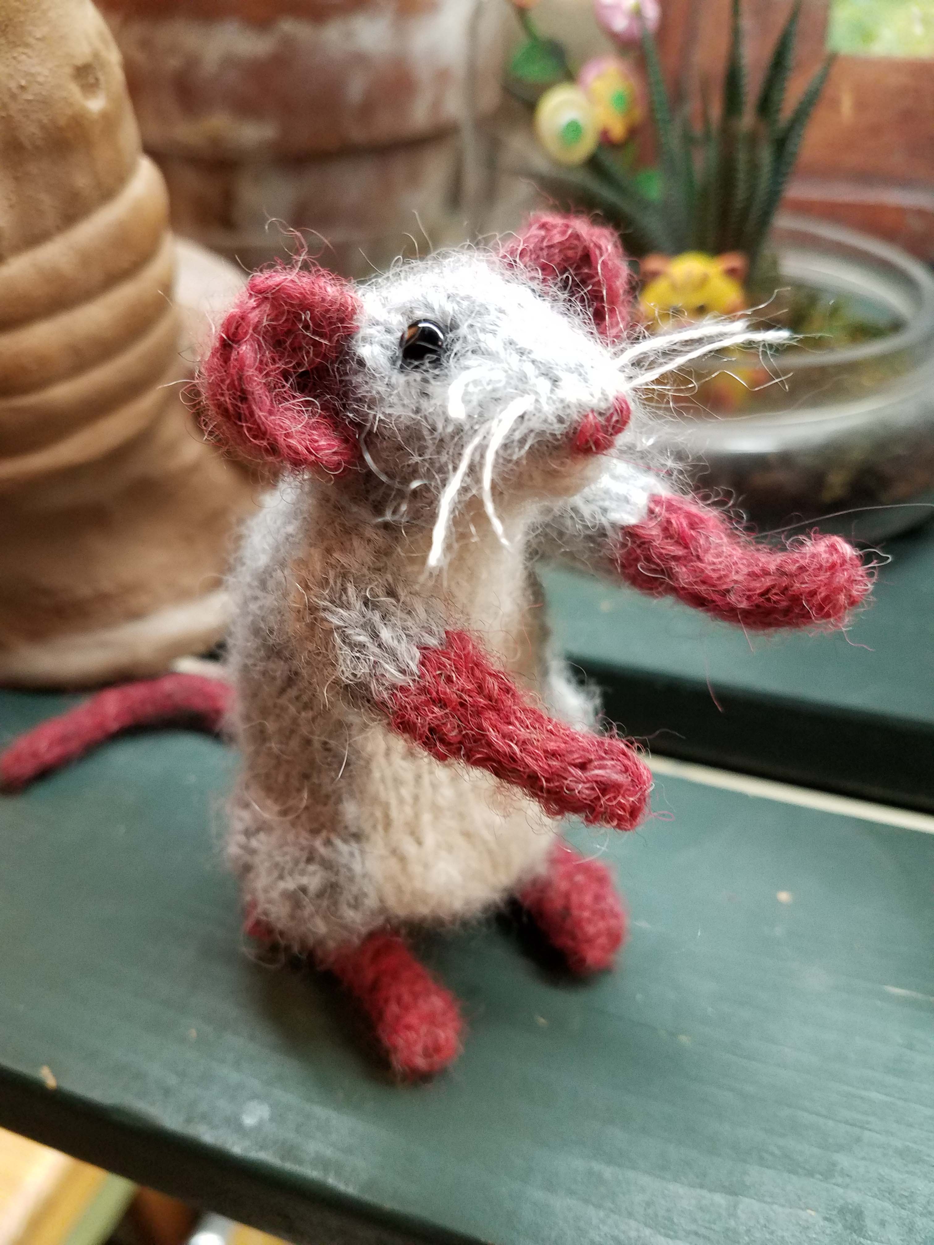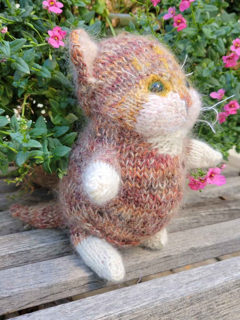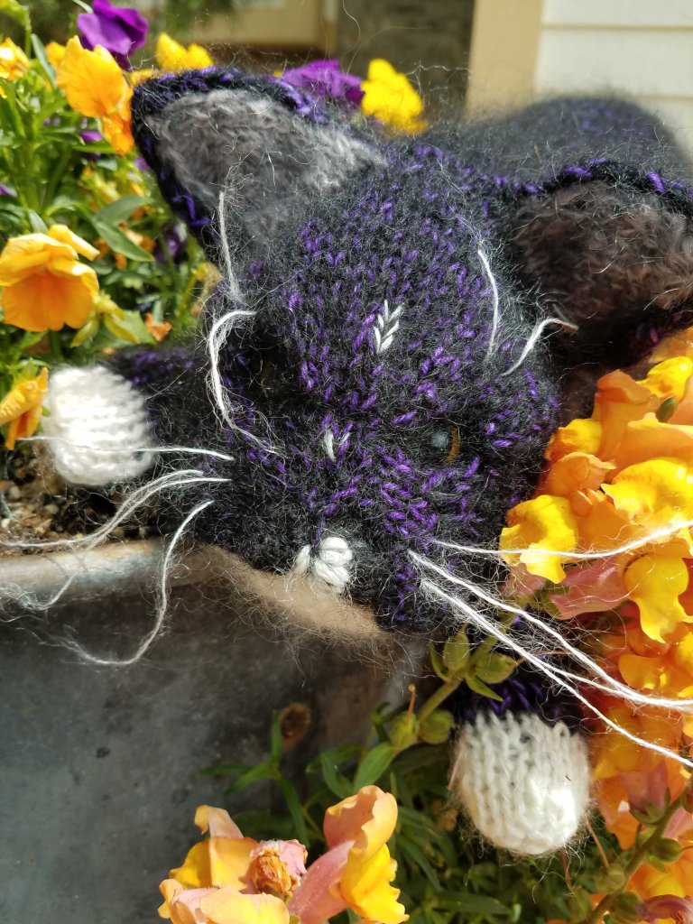 If you are interested in knitting your own cat, the pattern is Grey Kitten, Calico Cat by Claire Garland. I think that some more things will be joining this assembly on the table. I have some little statues that were put away because… Hannah… that I can now take out and arrange with the flowers. I have some special skeins of yarn that might be fun to display. Maybe I should focus on weaving a little wall hanging on the loom.