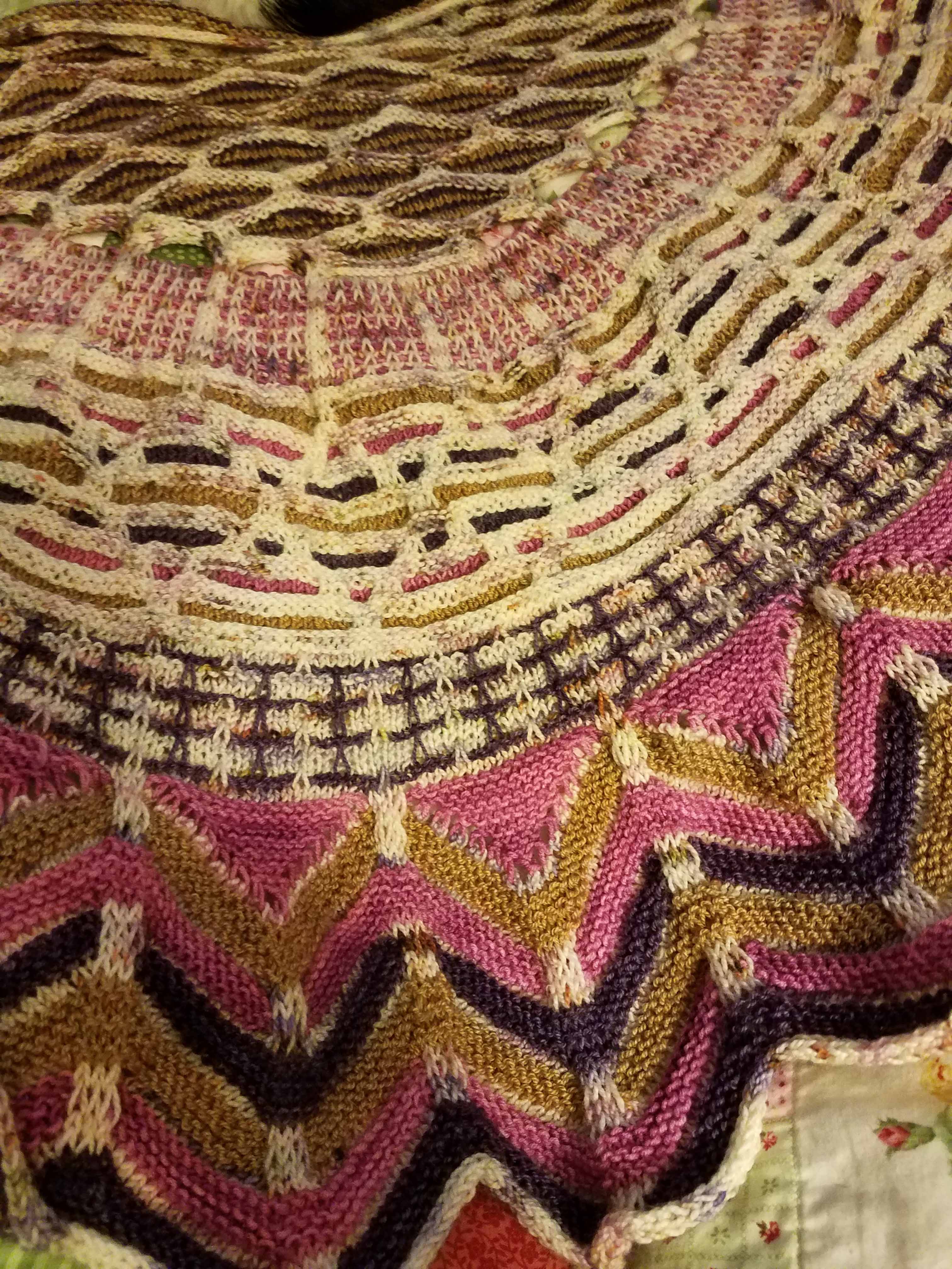 There is a little take-home lesson here somewhere. If you are struggling with extreme fatigue, shortness of breath, and everything hurts, just go with it. Make yourself a happy place. Make something beautiful. Hang out with your cat. Embrace the popcorn stitch. Read in the sunshine.