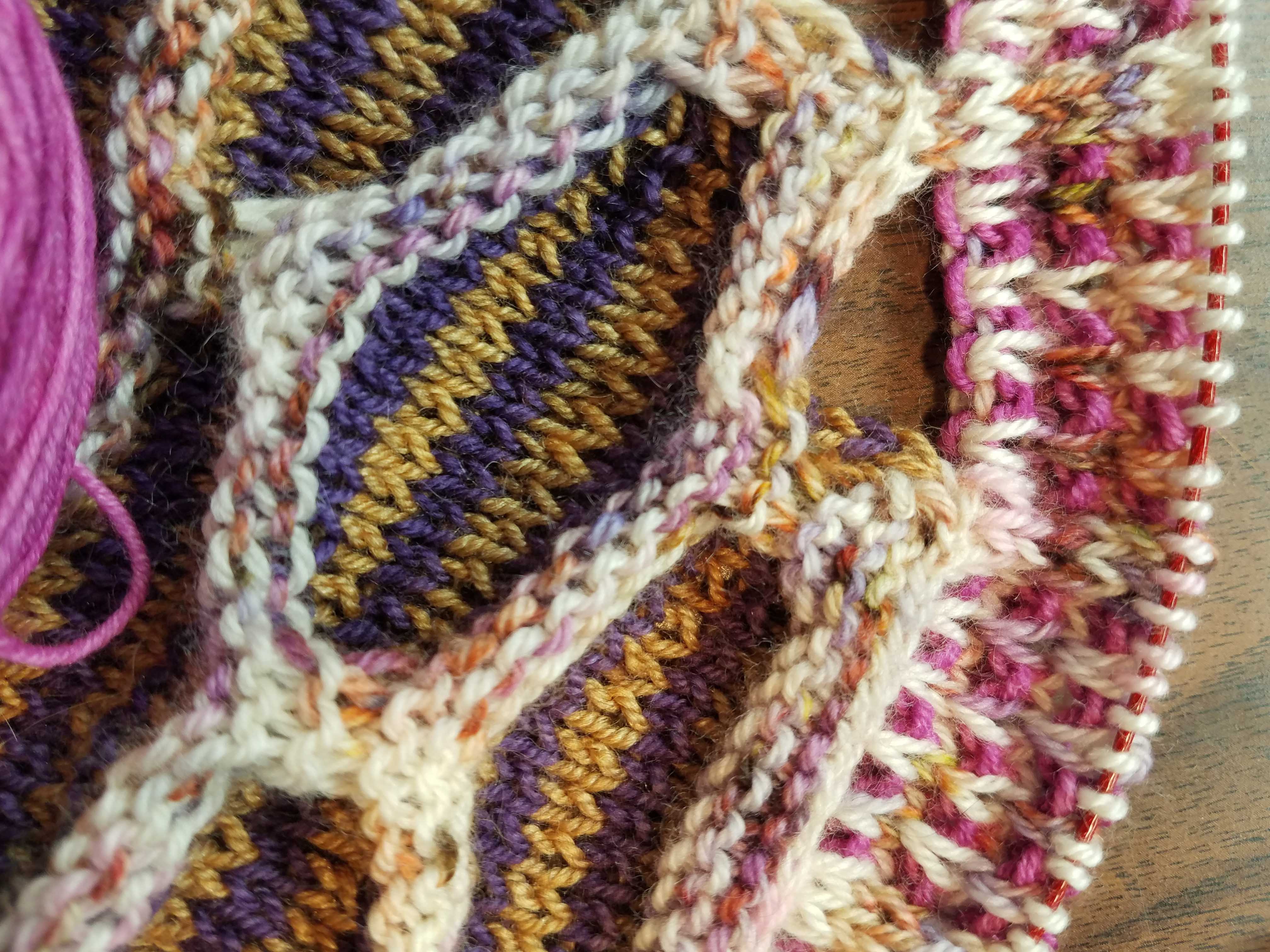 If you commit to knitting this sweater, and it is a serious commitment, you might as well commit to the popcorn. I’m really pleased with how this is looking. I’m into the third color of yarn and can’t wait to get to the fourth one. This is going to be a fun light cardigan later on this year.