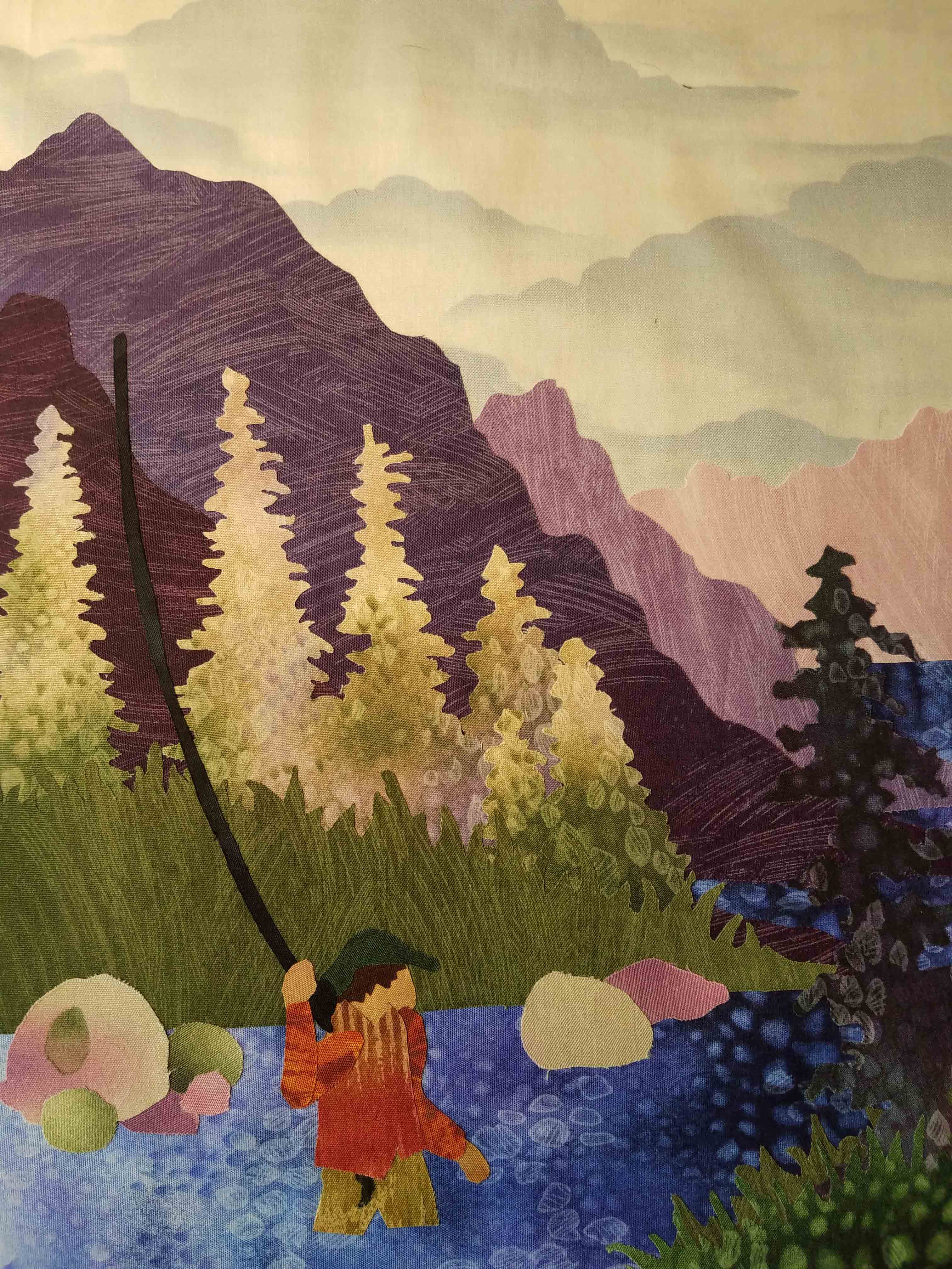 p.s. MR, how could I have forgotten to post the picture of the whole quilt? Here it is, a ribbon winner by my wonderful cousin Ruth Ann. Ya’ll, MR is at Downunder with Boodz and sets me straight whenever I wander from the straight and narrow…