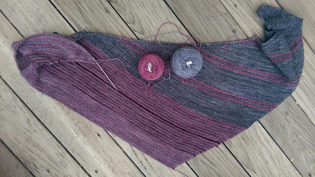 The forecast is for cooler weather and rain showers this weekend, and there is a Broncos game Sunday. I plan to really crank out some knitting over the next couple of days. The shawl should be big enough both for me and the cat soon. 🙂
