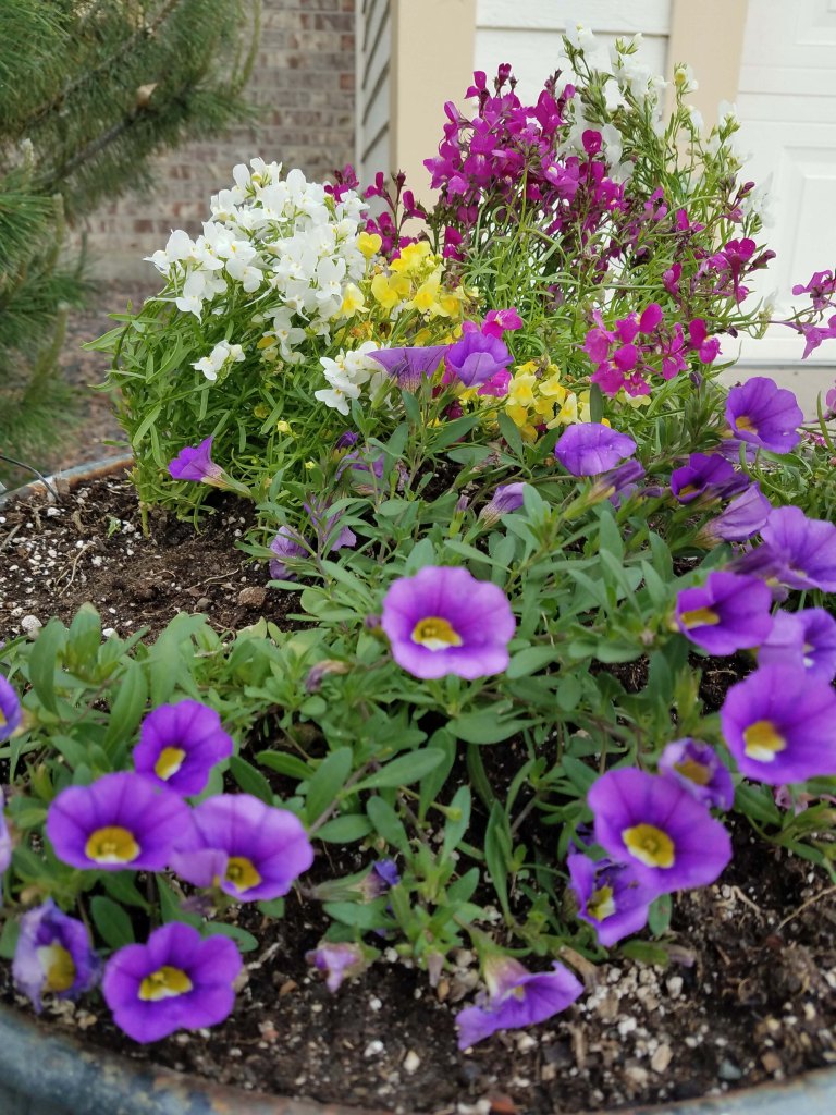 There was a nice week with sunshine that made me and the ankle feel better: I got some yard work done and planted flowers. Then the weather turned on me and once again I was in bed, listening to audiobooks and knitting with my ankle propped up.