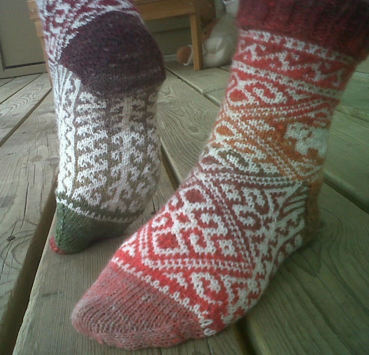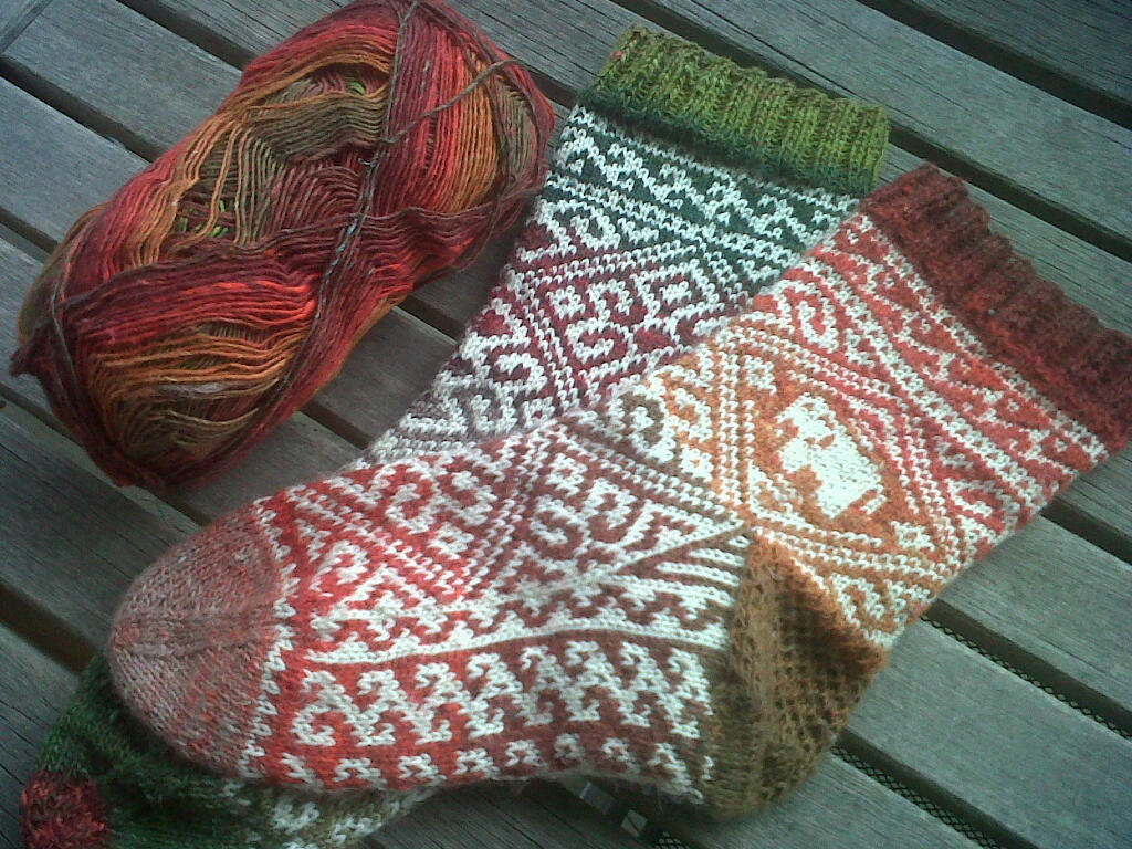 Now that I have one of the two shawls that I am working on finished I felt that it was OK to cast on the April 2015 sock. Here she is!