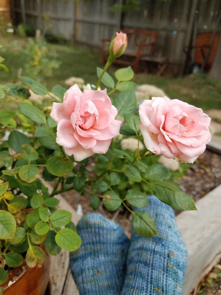 The heat here in Colorado has been unbelievable: we hit 100°F on Monday and it is still hot. My garden, however, is recovering in the lower light intensity and flowers are starting to bloom again. Feeling pretty good about things I’ve taken to knitting outside in the garden again in the cool of the mornings and late evening.