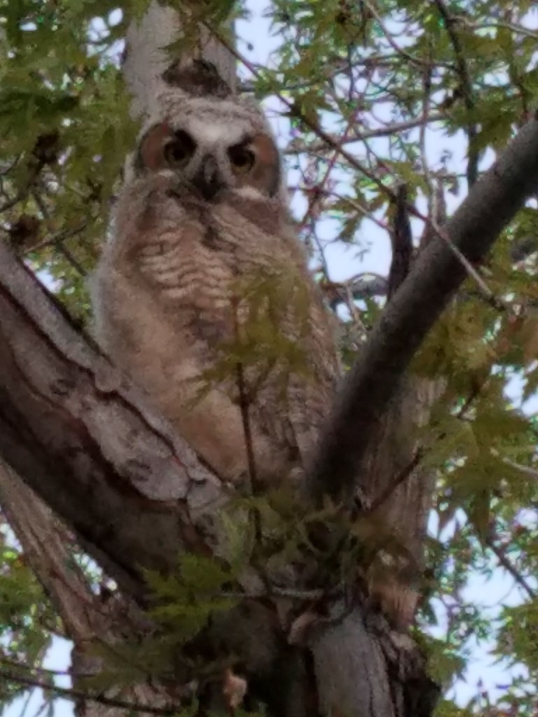 Do you see how low that plane is? I took this picture earlier in the summer, and you can see why it is hard to get a shot. The planes are so low I can’t see them until they are right over my yard! I’m pretty sure these are C-130 Hercules. That owl is a great horned owl, and I think that he and his friends are responsible for the recent decline in the bunny population in my neighborbood.
