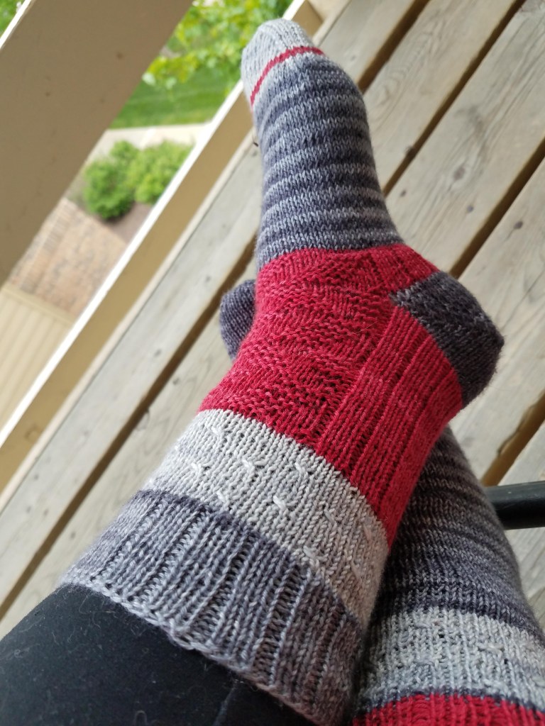 And just like that, the month was done. I had made 2 hats, 4 PICC line covers, 2 pairs of socks, and used up 3.38 skeins of yarn. I read 6 books. I did work on a sweater, but since I’m now in the colorwork portion of the knitting I put it on hiatus to await better days.