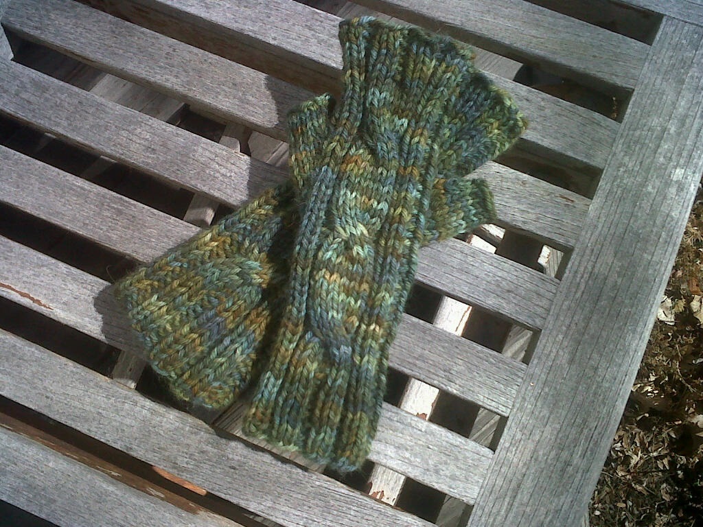 I love mitts. I have fat little hands with stubby fingers, and they get cold easily. Mitts are the perfect things for me to wear while reading in bed, working at the computer, working in a cold garage (where all the teacher stuff is stored), or driving in the car on cold days. I even pull them over my mittens when it is really nasty out and I have to shovel snow. They are fast to make, and because they are small I feel OK using some luxury type yarns on them like cashmere blends. They are a fun way to try out new yarns and colors to see how they will work out. I love hand-painted yarns, but sometimes they don’t look the way I think they will knitted up. Mitts are the perfect way to sample without making a big investment.