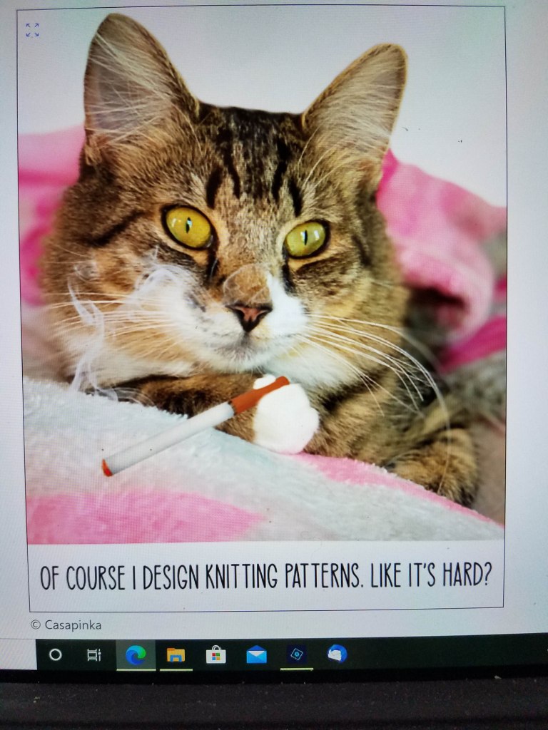 Sharon from Security (Casapinka’s very snarky cat) released her latest pattern last Saturday. I decided that I need to get my current knitting project finished before the first clue dropped.