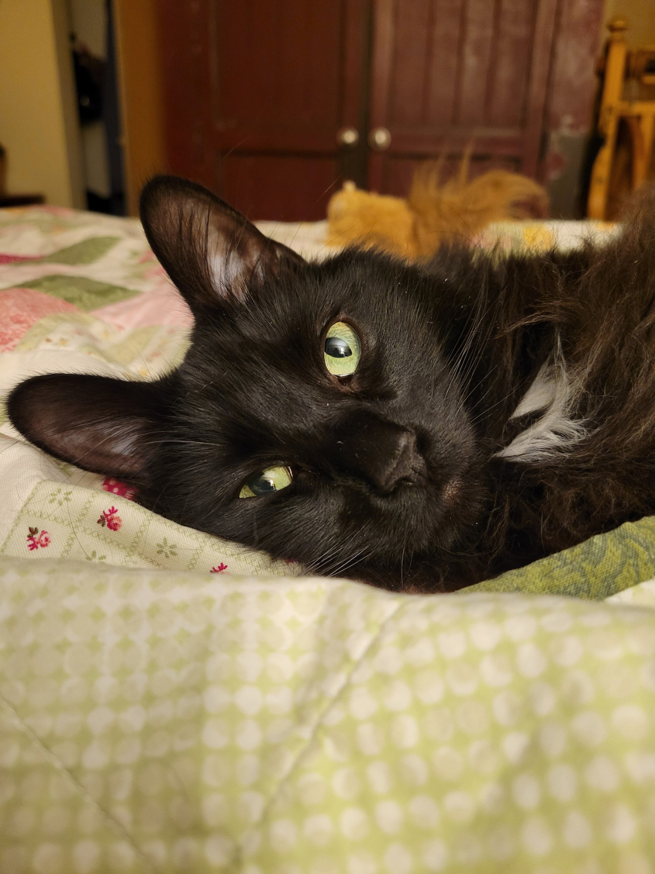 This has been kind of a busy week already. The Mother of Cats cleaned out her yarn stash (I helped, like… a lot!!) and then she cleaned out her quilting projects and put most of them into a big box that she mailed off to a cousin. Bye quilts. She has been doing a lot of cleaning and stuff, which is kind of fun for Mateo and me. We love the chaos!! We love all of the yarn moving around. We love our new cat beds!!!