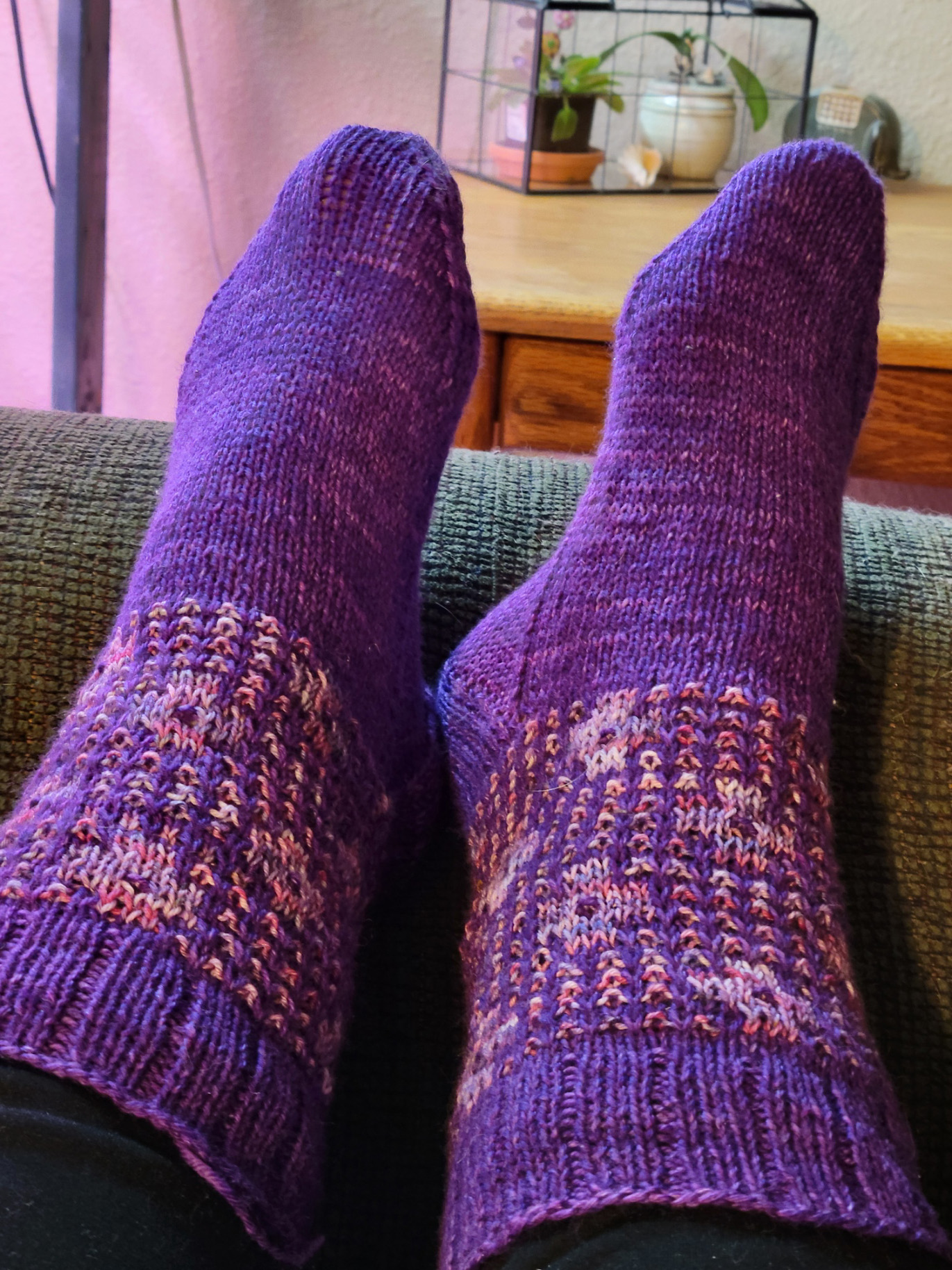 The Mother of Cats also got some knitting done. Here is her first sock!