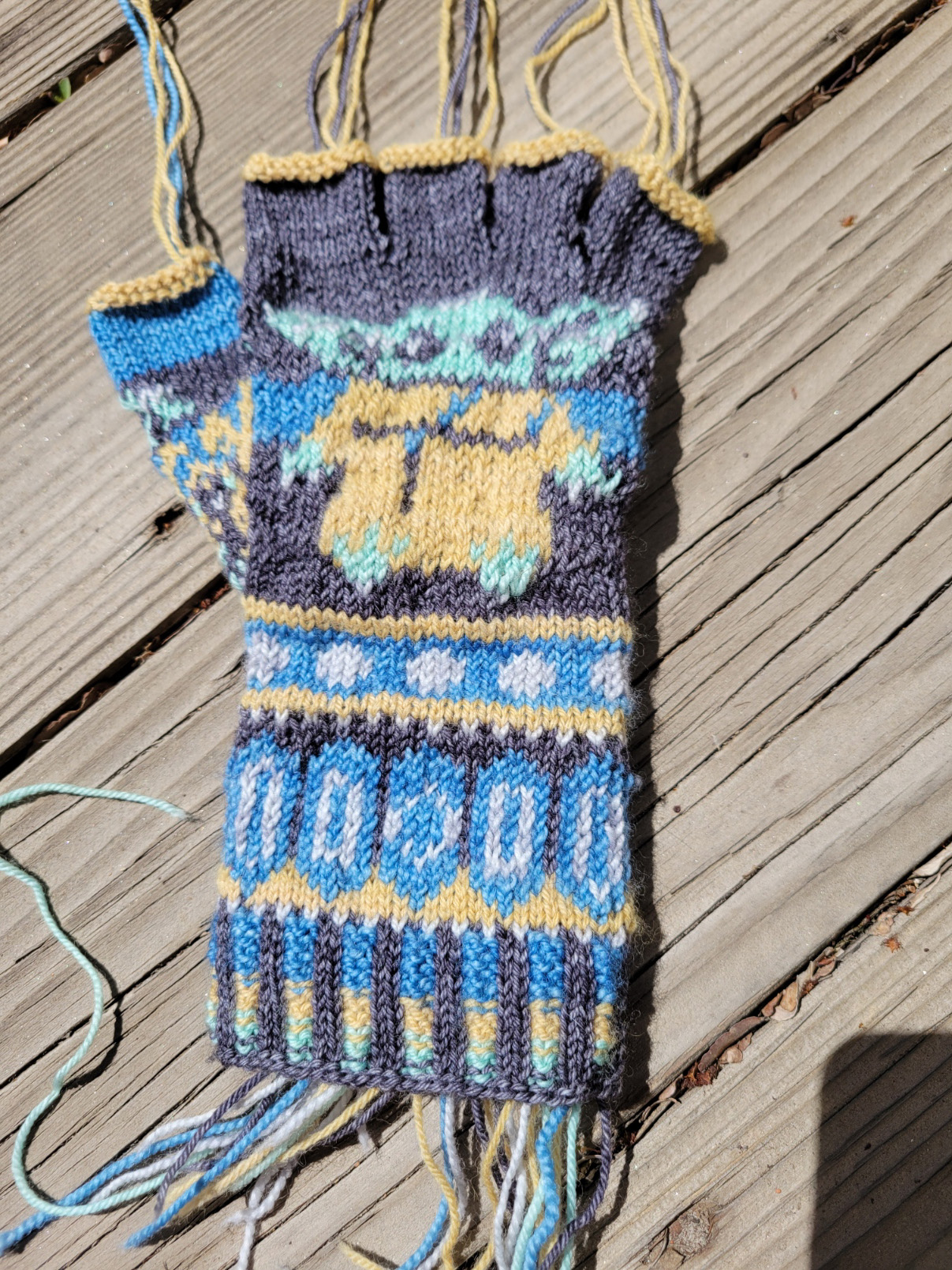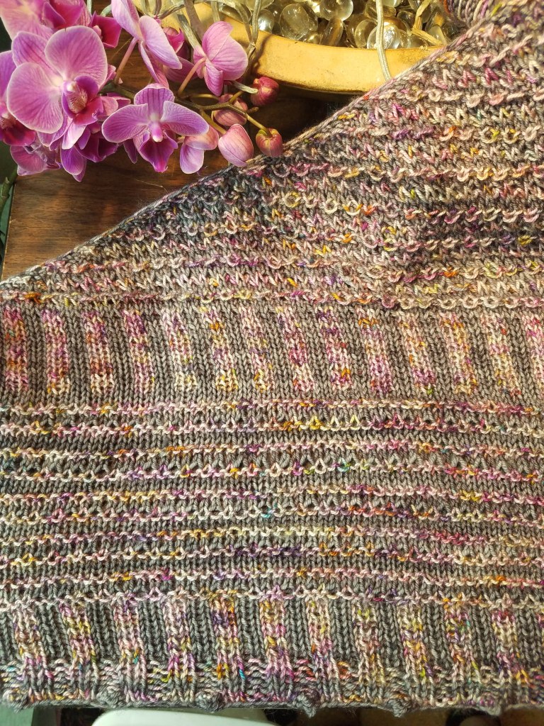 Look at how much sweater got done! The Mother of Cats is listening to The Adventures of Amina Al-Sirafi while working on her La Prairie cardigan. She really likes the book (but so far there hasn’t been even a single octopus in the story…), and she is below the armholes on the sweater and getting ready to start using the third color of yarn. Whew. That is a lot of knitting. I’m a really great support for the Mother of Cats while she’s working. I deserve more tuna for sure!