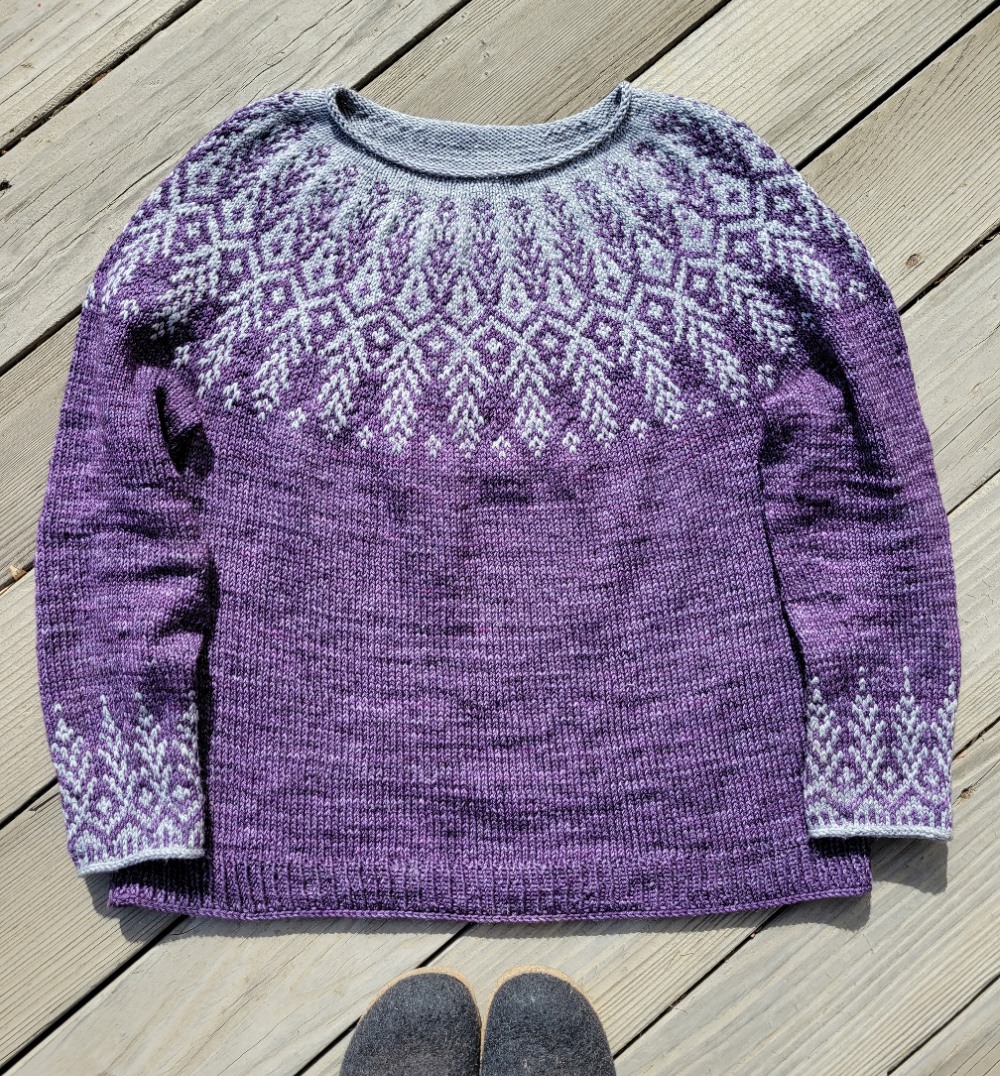 Mostly we stayed indoors and knitted away on the new sweater and listened to an audiobook when we weren’t playing with plants (that’s coming up soon…) or suffering in the cold whiteness.