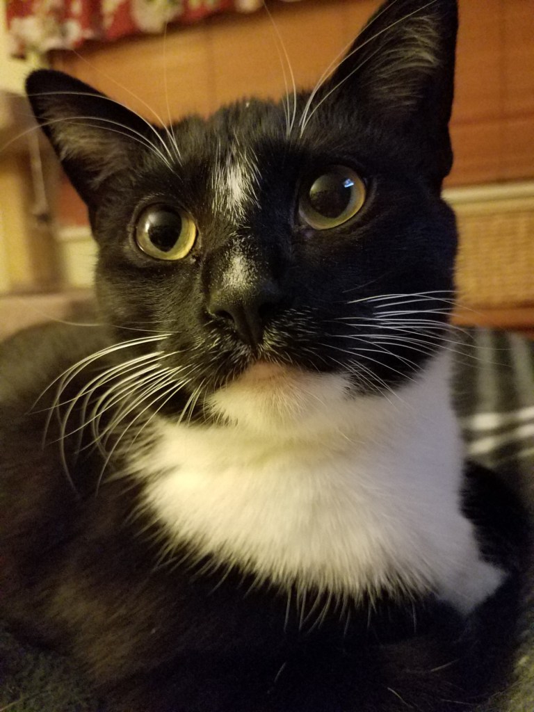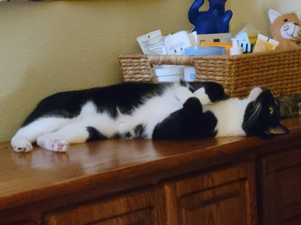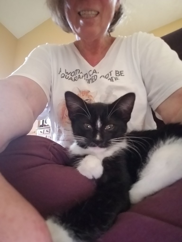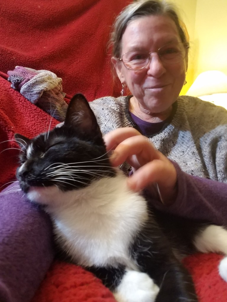 Another glimmer: my son’s three cats were rehomed together to a wonderful lady who had lost a beloved cat. All three kitties are now happy in their new home, piling on and cuddling with her while she crochets in the evenings.