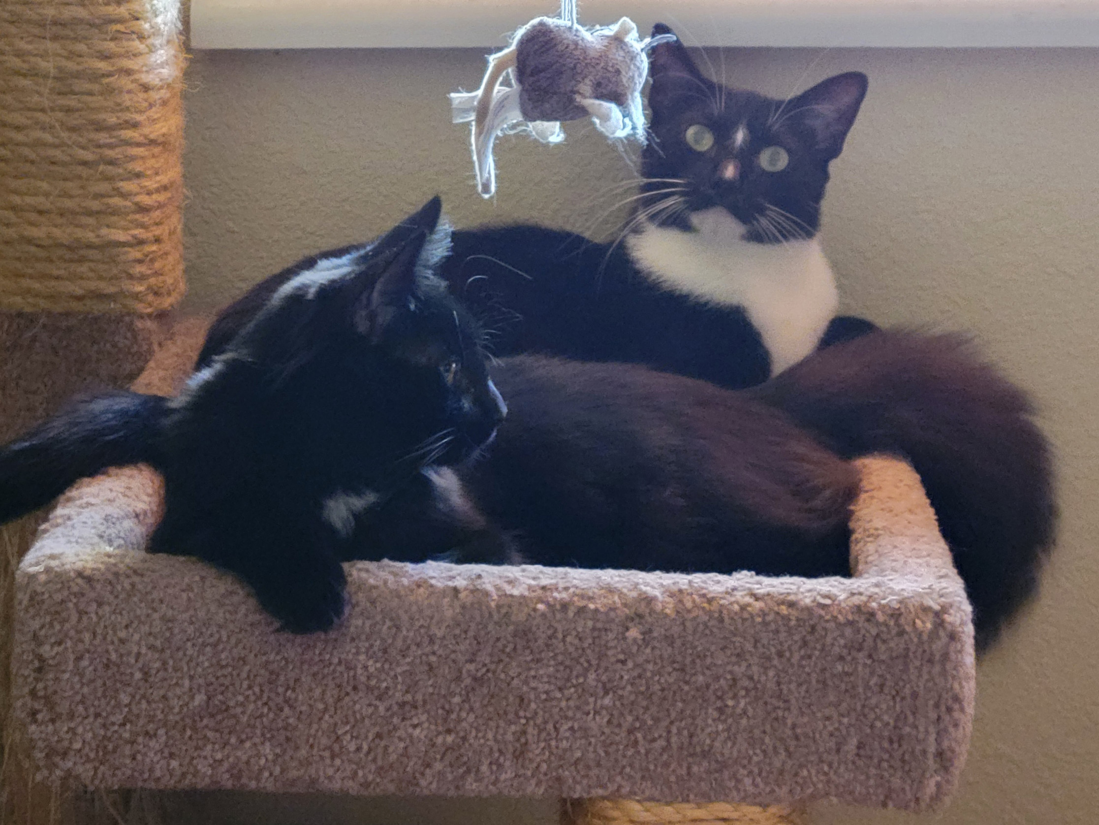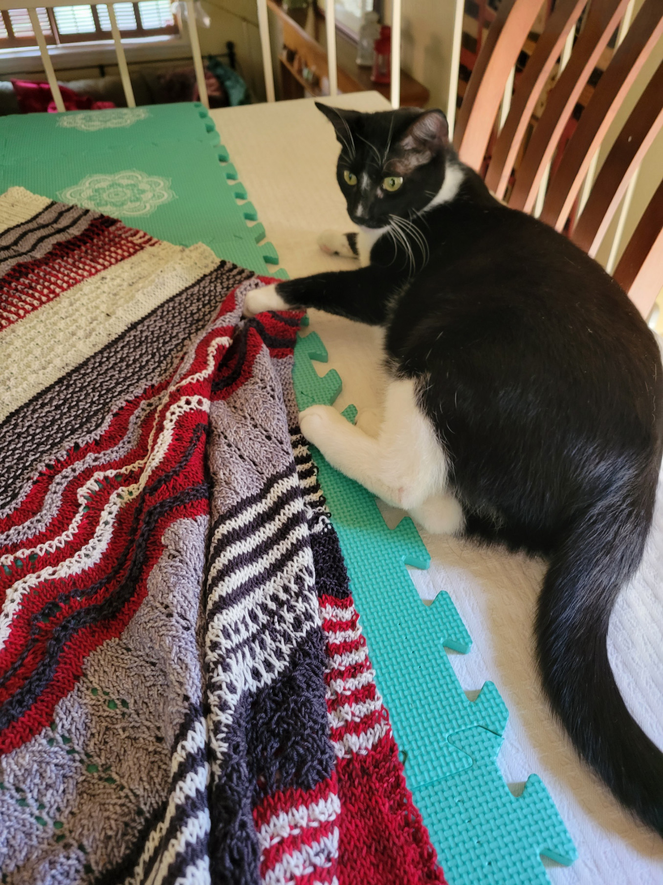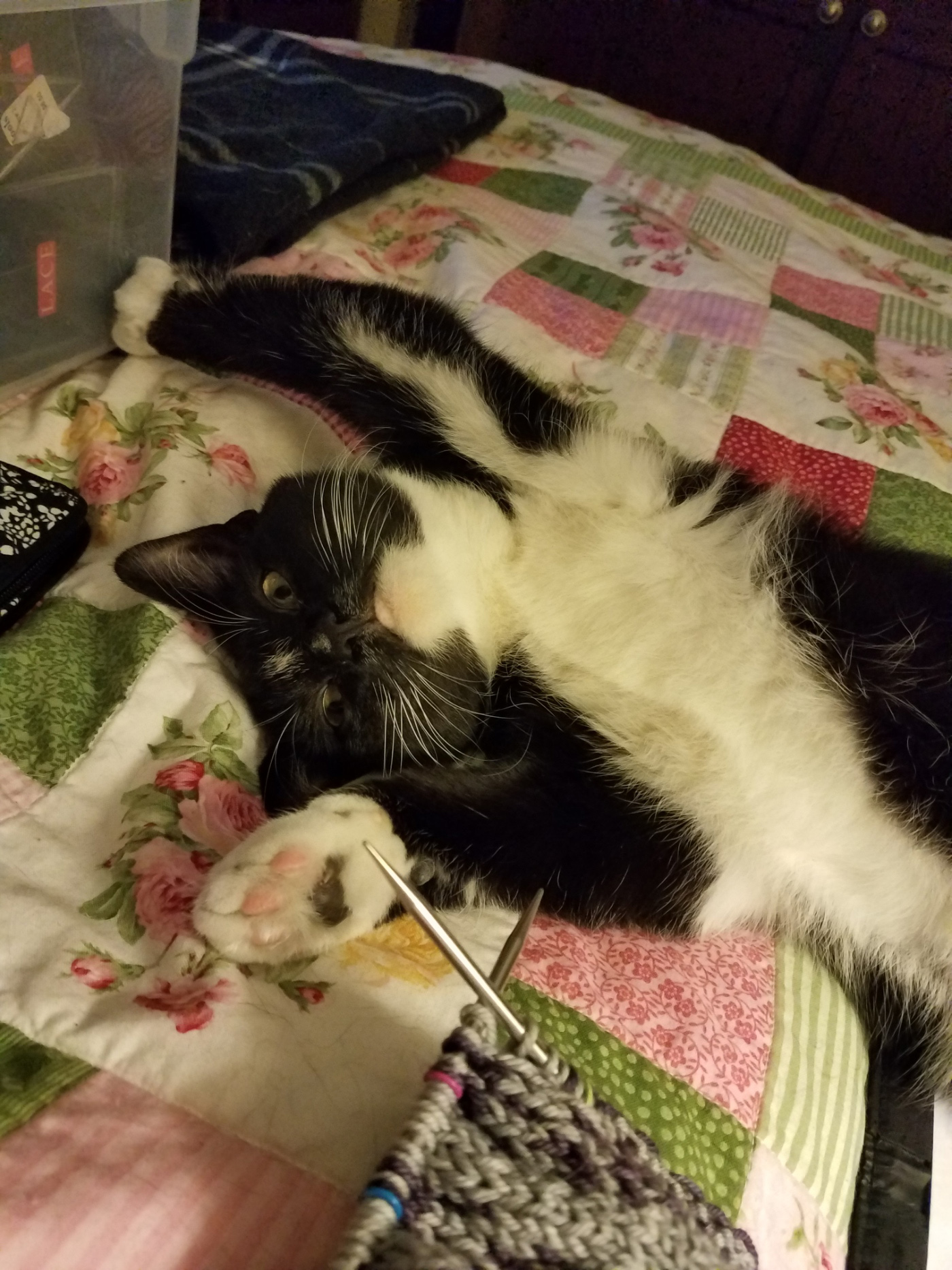 Another glimmer: my son’s three cats were rehomed together to a wonderful lady who had lost a beloved cat. All three kitties are now happy in their new home, piling on and cuddling with her while she crochets in the evenings.