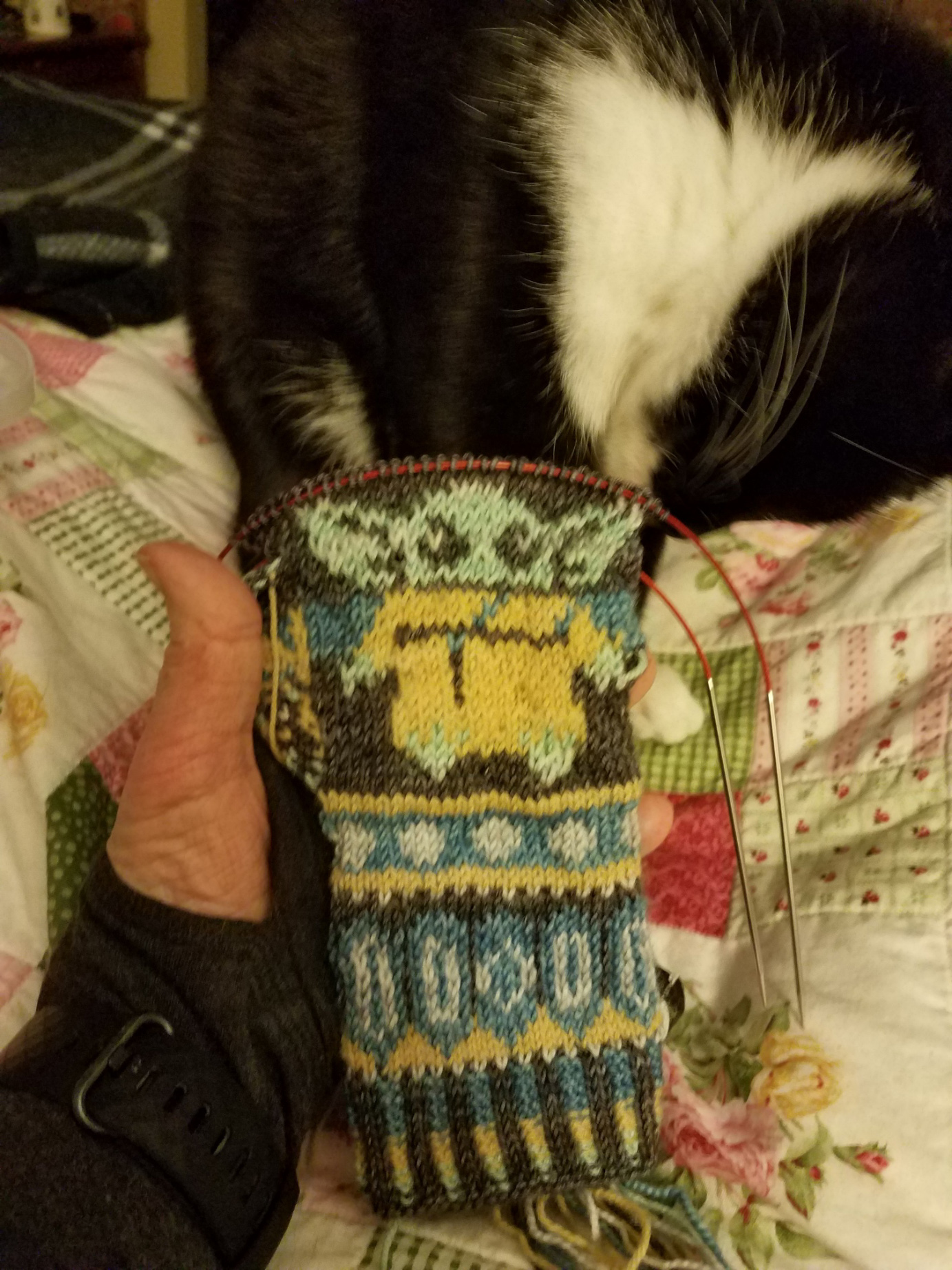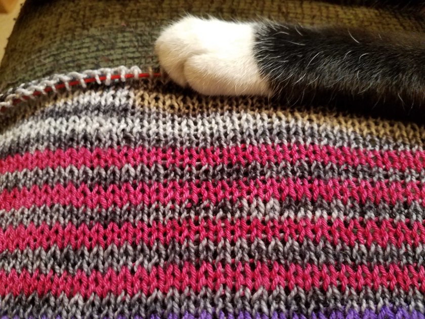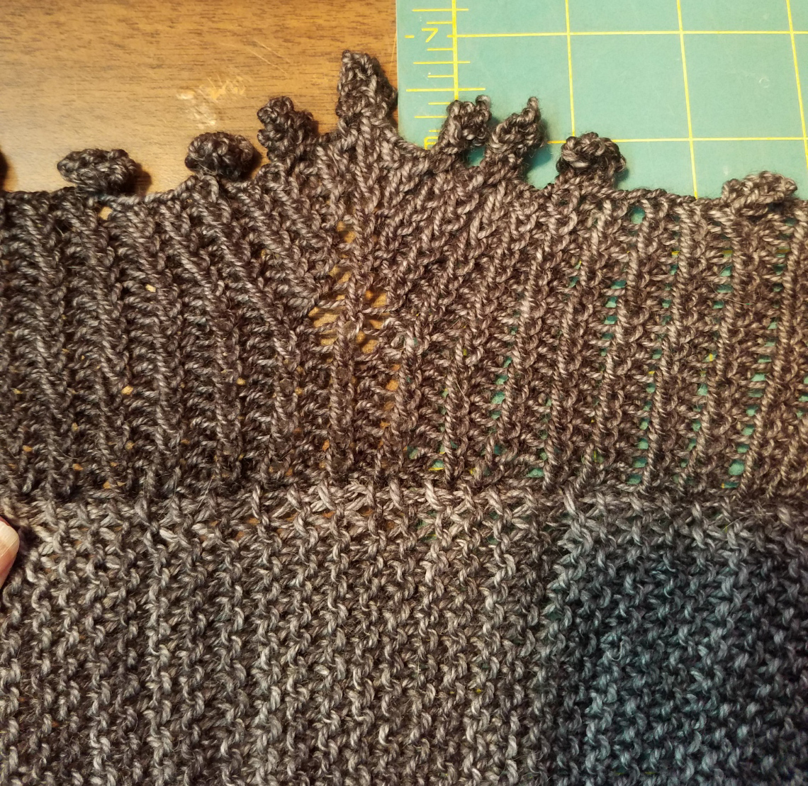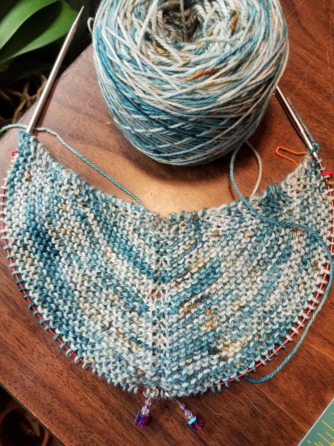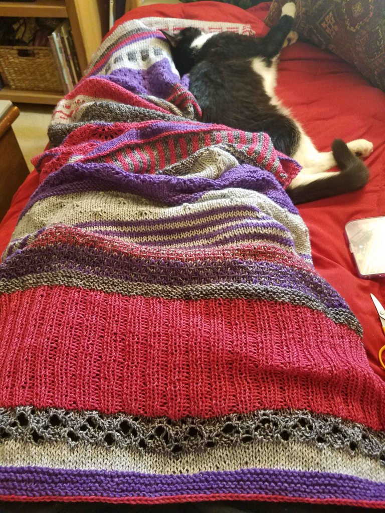 I was moved to new drugs. I started a third immunosuppressive drug, one that was off-label and required a fight with the insurance company, and I began to slowly improve. Palliative care discharged me. I found more beautiful yarns to love, and more shawls to knit. The shawls began to pile up along with the number of diagnosed complicating conditions that were linked to my underlying autoimmune diseases, but I was okay; I had essentially knitted (and blogged) my way through grief, and I was now ready to take things on. I found new doctors who became collaborative partners in my care and faced down the monsters of new complications. Today I am much, much better than expected; my latest lung testing shows that my lungs have regained more function, and my PAH is under control. My cardiologist rarely mentions heart failure when he talks to me, and I am off oxygen.