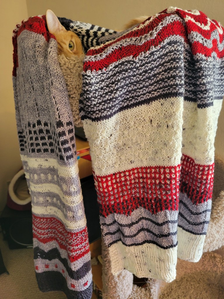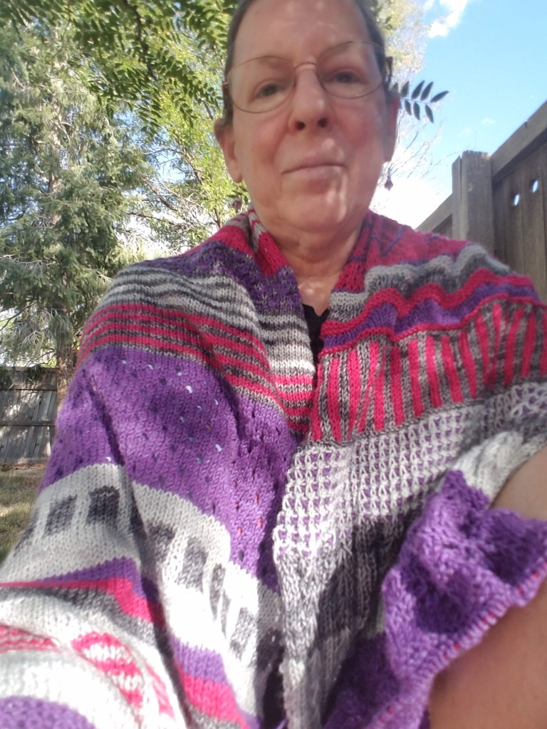 In 2014, after years of medical gaslighting, I was diagnosed with systemic sclerosis (a form of scleroderma) and Sjogren’s Disease. I was started on some medications, lots of tests were ordered, and just like that, my view of my future changed forever. I learned that there was a 50% fatality rate for my disease. I failed the first two drugs used to try to slow disease progression. Follow-up testing after a year showed that I had declined 27% in my lung function, and I was referred to palliative care. I was in grief. I began to compulsively knit. Overwhelmed, unable to cope with actually creating a garment that would fit, I made shawls. Lots of shawls.