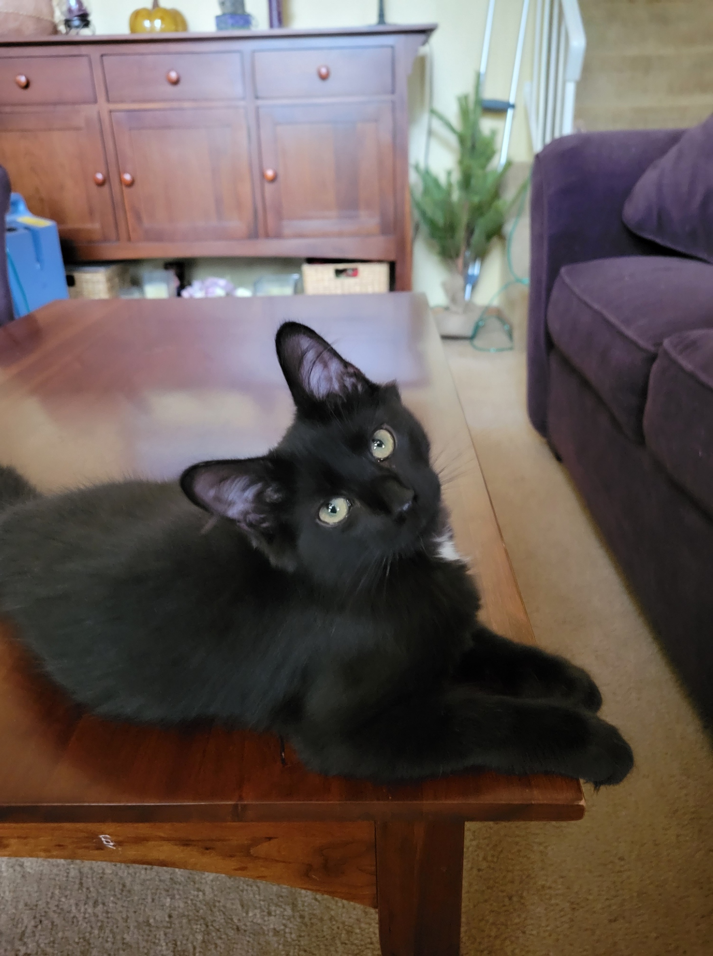 The new kitten, Mateo, continues to grow at an accelerated rate and is eating like a bottomless pit. He is now 3 months, 3 weeks old and is much less clumsy but still unable to jump up onto counters. Whew. No rush there. By the way, do those front paws look kind of big to you?