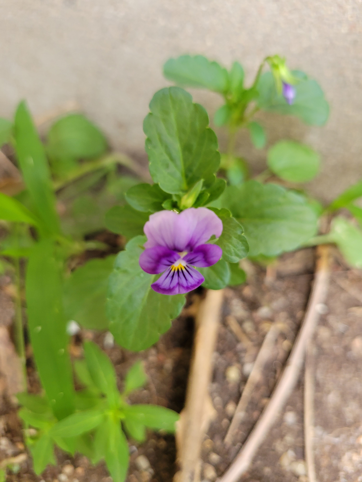 The garden is full of volunteer plants that are popping up from things I put in the garden in years past. The big winners are snapdragons… they are everywhere! I put in a picture showing all the new buds that are emerging on the plants (2nd from left) and one with dried seed pods that already dropping seeds on the same plants (3rd from left). I am moving some of the seeds to gardens in the back flower beds as I work clearing out weeds and I’m hoping that there will be a new crop of snapdragons back there next year. I’m also seeing cute little Johnny-Jump-Ups appearing in the gardens like the little purple flower in the last picture. It’s becoming kind of a Darwinian garden in this flower bed over time as the plants that are more successful are taking over my flower bed and other places in the yards.