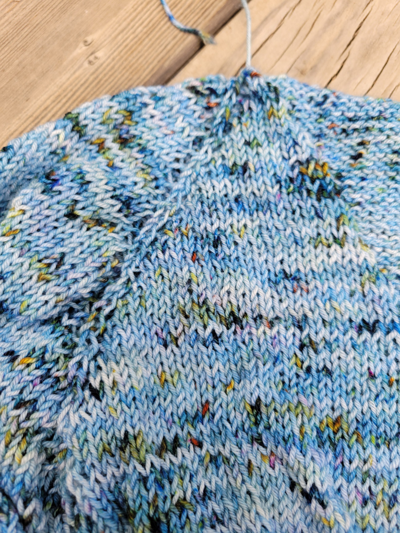 I got busy on a new sweater and made some good progress this week. I am making the Rock It Tee using some great speckled yarn from the stash and I am so pleased with how it is working out.
