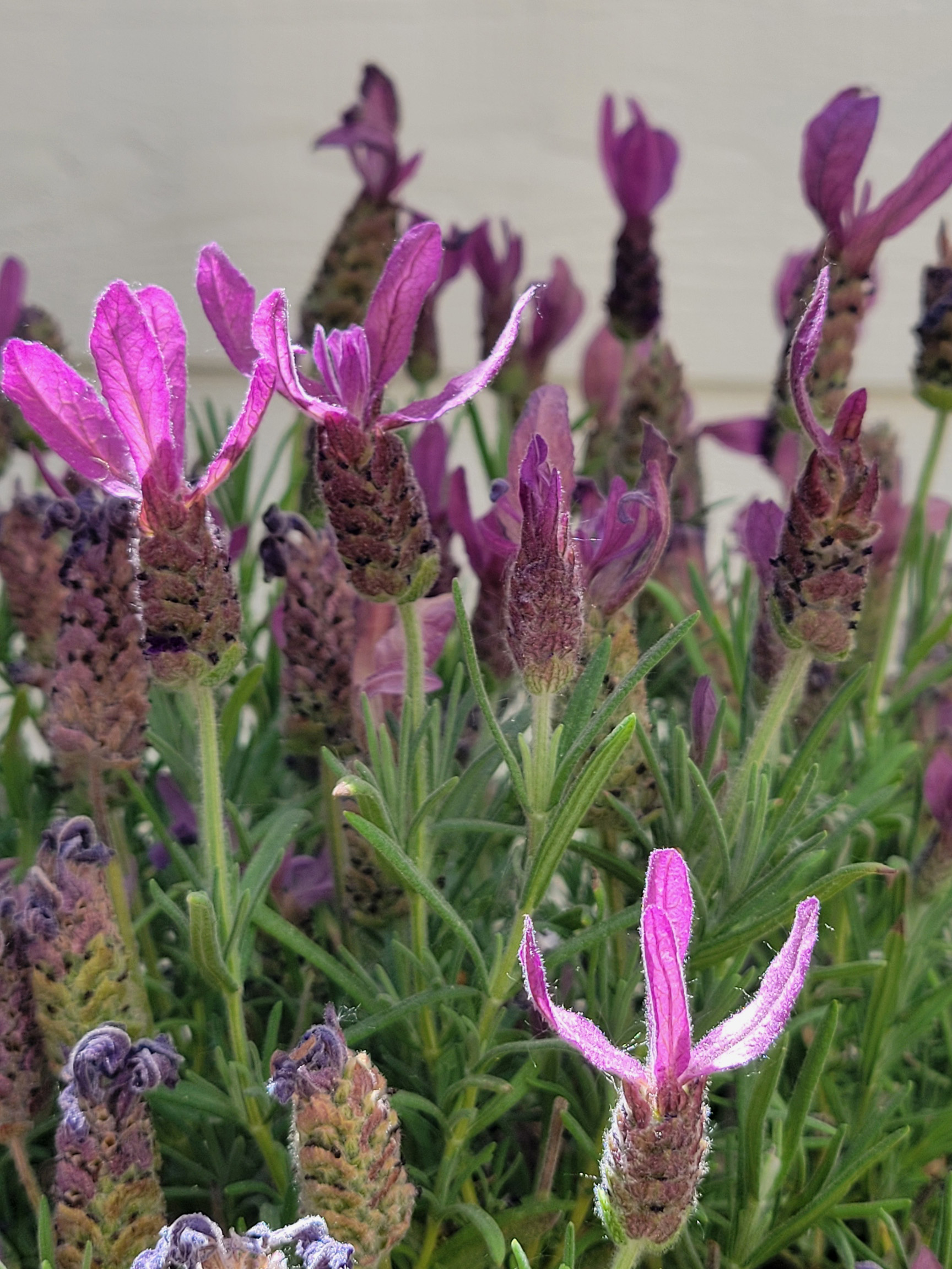 There are 4 types of lavender here. The large plant with Mateo for scale is a mystery lavender brought home from the grocery store. The little group of three lavender plants shows Provence Lavender (the tall plant), English Blue Spear Lavender, and French Lavender ‘Otto Quast’. The Otto Quast is having issues with its nationality, evidently, because the tag says English, but the internet is sticking with Spanish. I await some blooms from this plant…