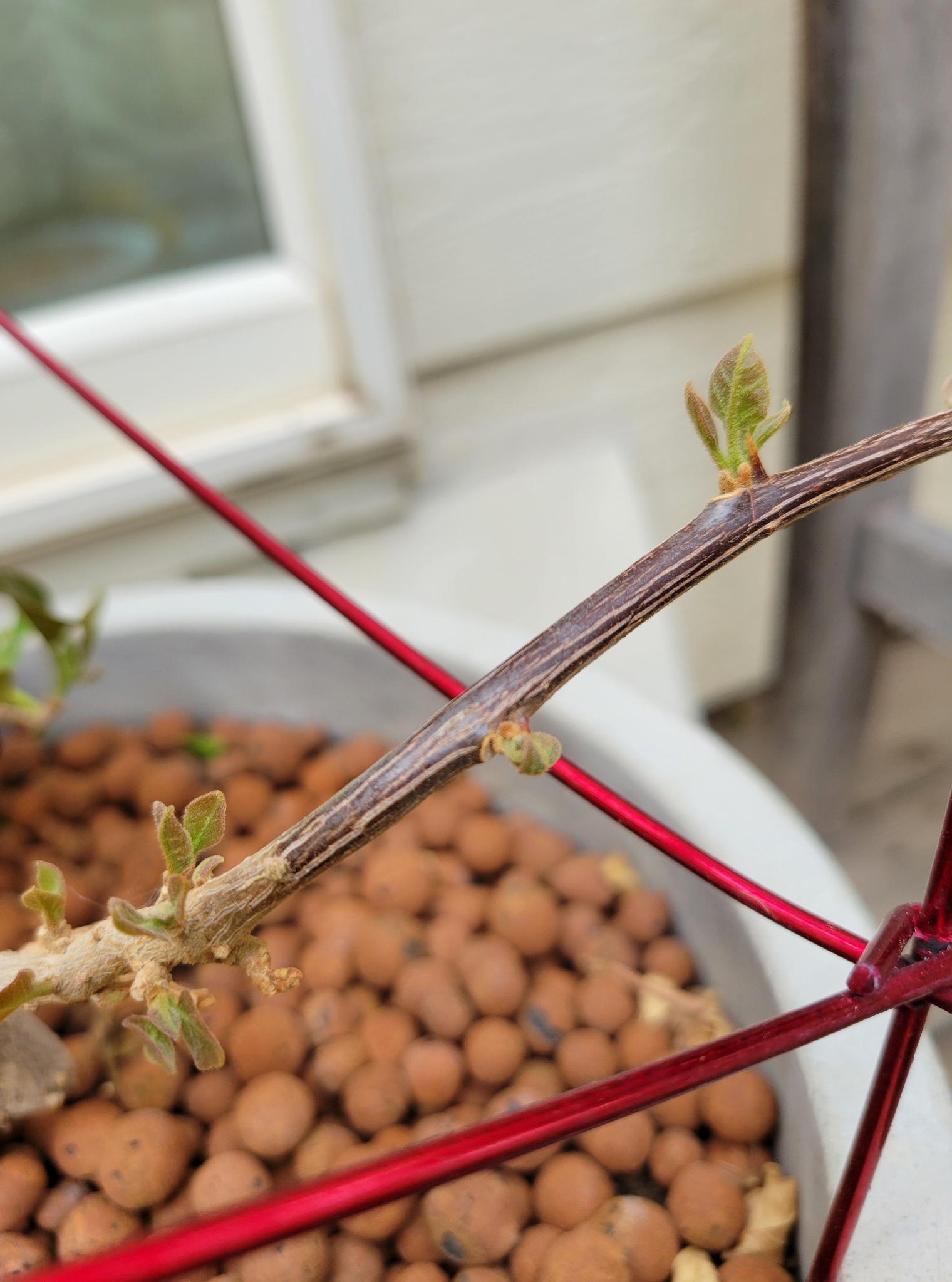 On the deck I have some little experiments chugging along: my milkweed seeds have successfully sprouted and I’m starting to consider places in the yard to plant them. I overwintered a bougainvillea plant in my front room this year, and it moved onto the deck a couple of weeks ago. What a sorry looking mess it was for a few weeks even though I misted it twice a day and limited its sun exposure, many of the leaves burnt and dropped off. Today the plant is covered with the beginnings of new growth. Yay!